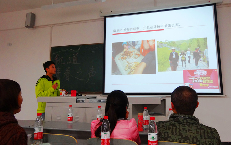 同学们把自己在假期发生的一些有意义的事情用演讲的形式分享给给大家:有用单车自驾游去西藏的同学,分享了自己一路上看到的美丽风景和经历的酸甜苦辣;有在轨道公司实习或做兼职时自己的一些感悟;有同学讲述自己当外拍模特时,为了台上十分钟的精彩而付出的汗水和艰辛;还有的同学选择在军营里流血流汗锻炼自己,过着有严格纪律的军旅生活......最后一个讲述经历的是侯晓娟老师,她给我们分享的是“读万卷书,行万里路”,当汶川发生地震后,她毫不犹豫的选择成为一名重建家园的志愿者,是她让我们感悟到在同一个地球,同一个国家,有的人却过着艰苦的生活,相比之下我们已经很幸福了,所以我们要迈开自己的脚步,才会知道周围方圆几公里并不是全世界。