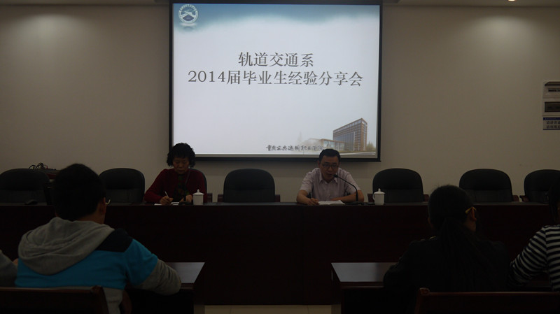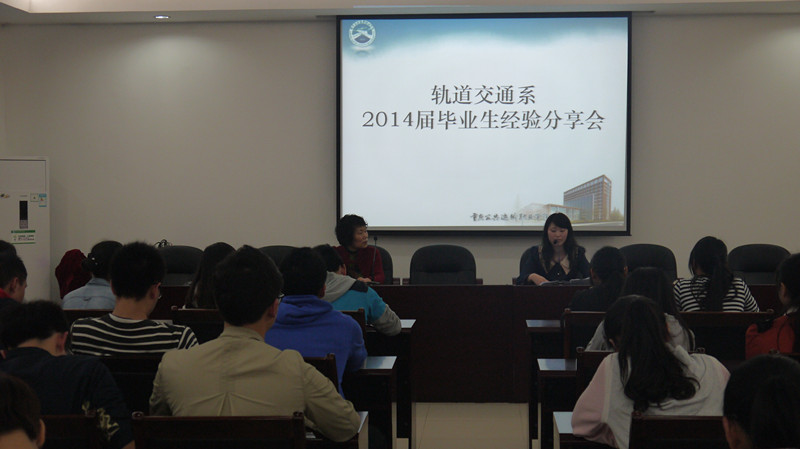 2014年4月10日晚7点,轨道交通系在学院A403会议室隆重召开了2014届优秀毕业生经验分享会,学院办公室主任王欣、轨道交通系党支部书记丁晓莹及系部各班部分学子参加了此次分享会。