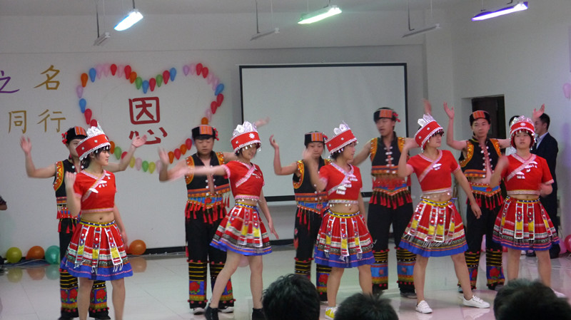 在大家整理完感动的心情之后,我们期待已久的1306班的土家族摆手舞开始了,十位同学穿戴着土家族服装,以优美的舞姿加上活跃的旋律把整个班会带入了高潮。摆手舞充分体现了少数名族对国家的感恩,对民族的特色展示。最后,“父亲”的歌声预告着此次主题班会接近尾声,在