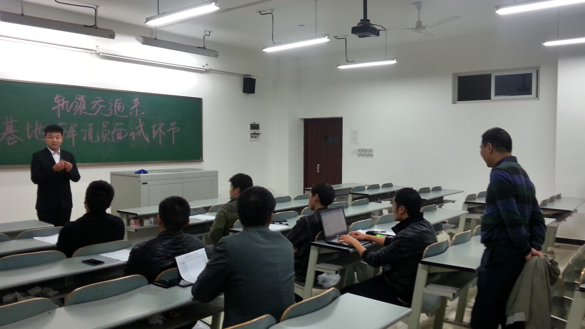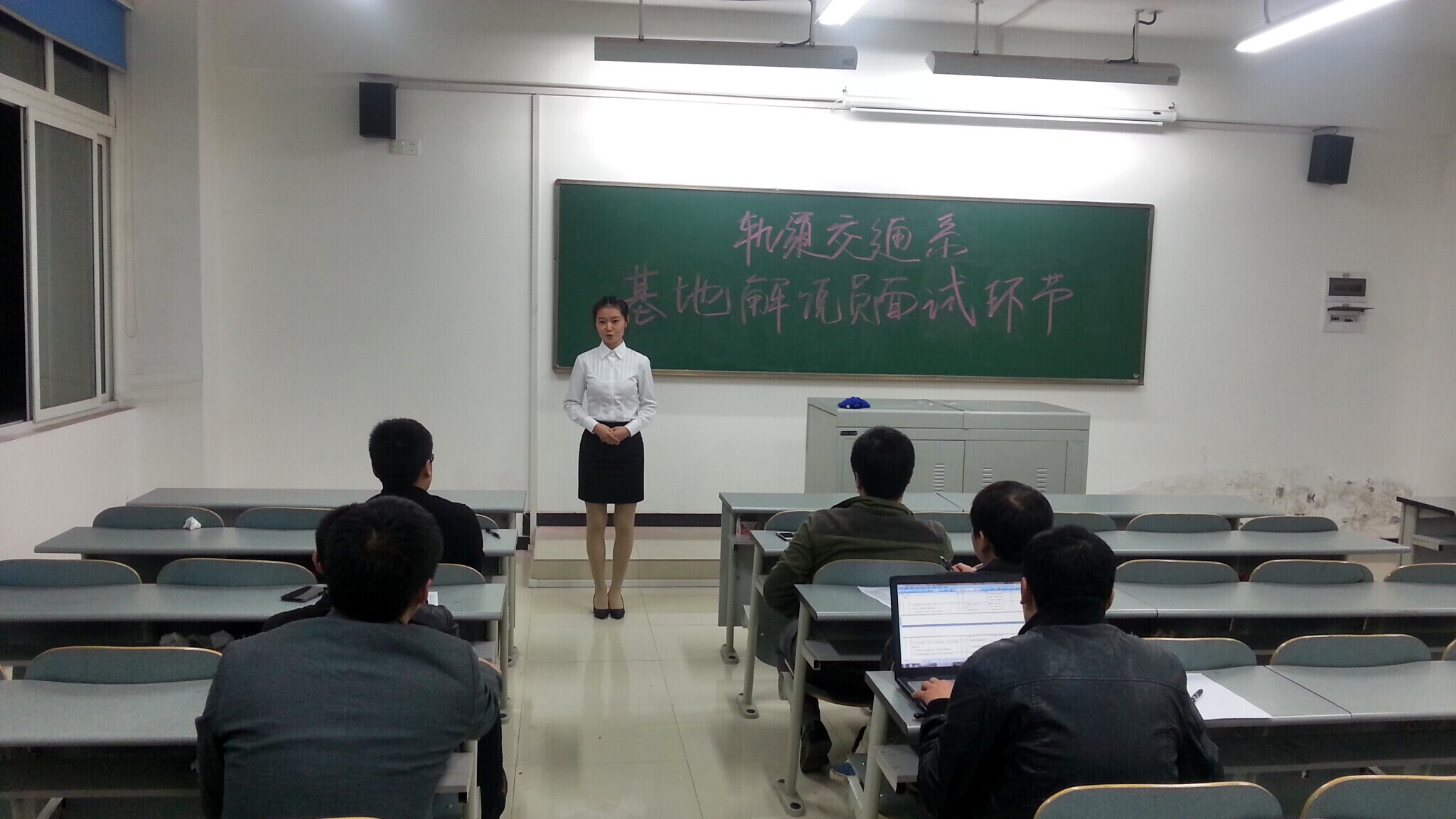 2014年11月6日,经过两批面试,轨道交通系举办的城市轨道交通技术实训中心基地解说员第二阶段选拔于21时正式结束。轨道交通系陈兴劼、刘杰、蒋晶、王德春、杨昌休、龙讯等老师担任了本阶段选拔的面试评委。