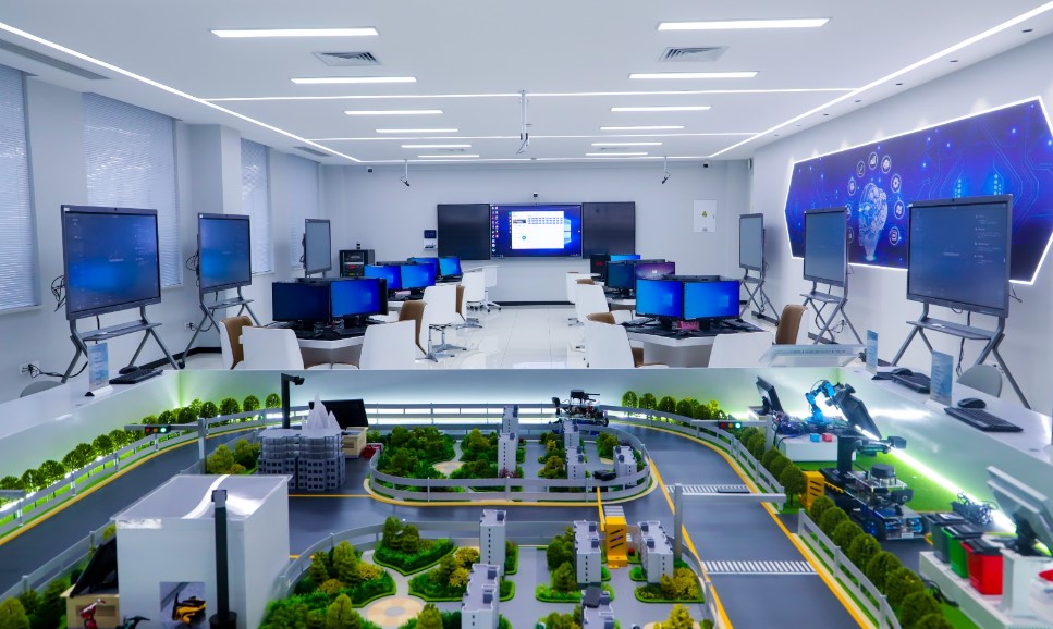 本次获奖的人工智能大数据实训基地位于学校科学城主校区教学楼B栋1楼,建筑面积400㎡,总计投入800余万元,由电子游戏智慧交通学院与重庆交通开投科技发展有限公司、新华三技术有限公司共同建设,实训基地设计理念先进,功能布局合理,配套设施完善。基地主要由人工智能技术应用实训室、大数据技术应用实训室和人工智能大数据技术应用综合实训室等组成,实训基地不仅能满足学校相关专业的实训教学需要,也能为全校开展信息技术类课程和其他课程提供“智慧+”软硬件支撑,同时也可根据行业、企业的需求开展人工智能、大数据、互联网+教育的技术服务、企业数字化转型培训、承办各类专业技能比赛。
