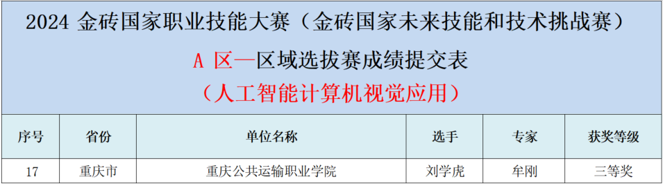 为提升教师技能水平,推动人工智能相关专业的教学内容与教学方法的改革,培养更多人工智能计算机视觉领域产业发展需求的技术技能人才,近日智慧交通学院选派教师刘学虎参加了2024年金砖国家职业技能大赛-人工智能计算机视觉应用赛项区域选拔赛,荣获三等奖。