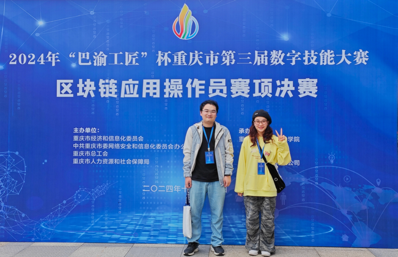 巴渝工匠 杯重庆市第三届数字技能大赛区块链应用操作员赛项(职工组)决赛获奖名单近日公布,我院教师刘学虎、刘雪垠组队参加该项比赛喜获三等奖。