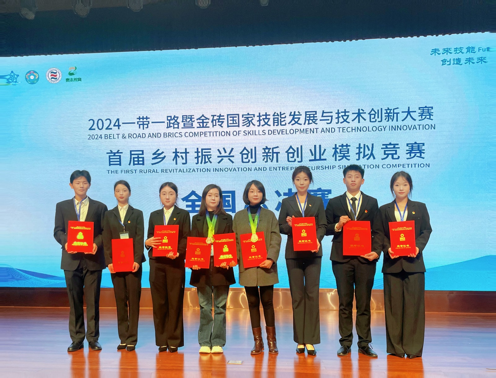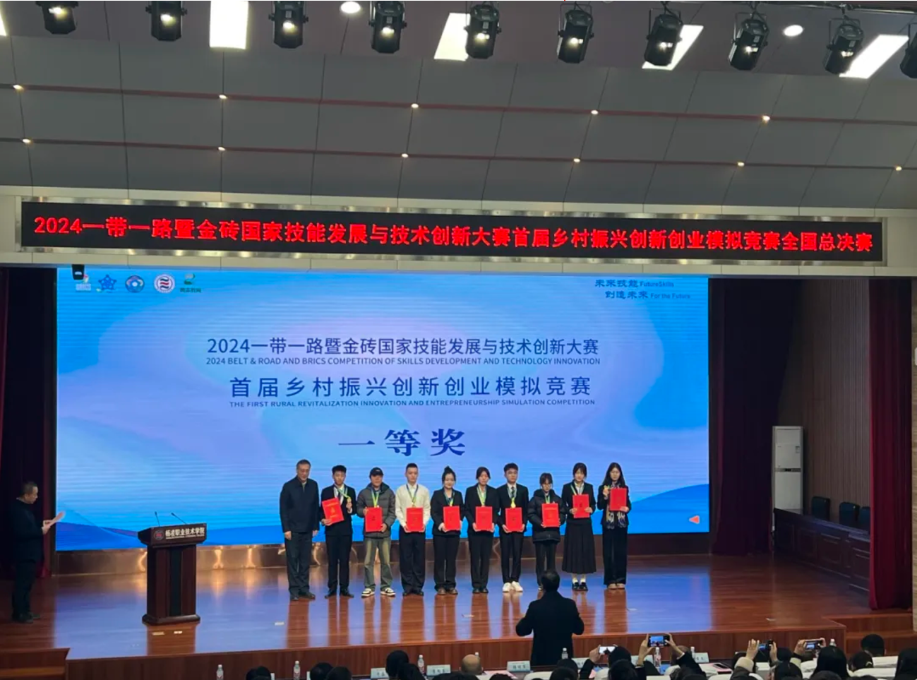 2024年11月25日,一带一路暨金砖国家技能发展与技术创新大赛首届乡村振兴创新创业模拟竞赛全国总决赛在陕西杨凌职业技术学院落幕,智慧交通学院和运输贸易学院联合代表队最终斩获大赛一等奖,学校获评最佳组织奖,展示学校对标一流、改革攻坚,在创新创业、经贸助农、市场营销教学实践等方面取得新成效。