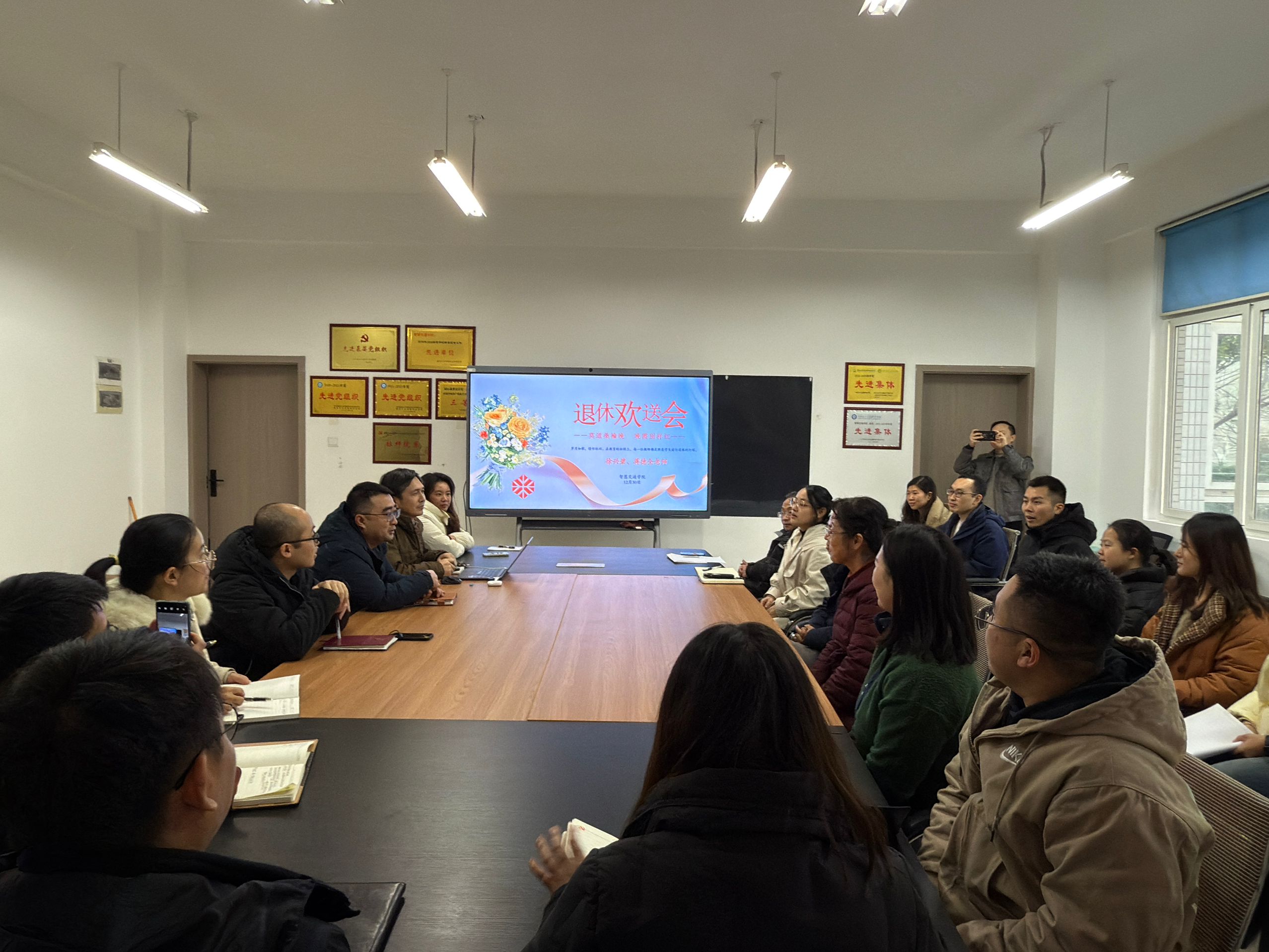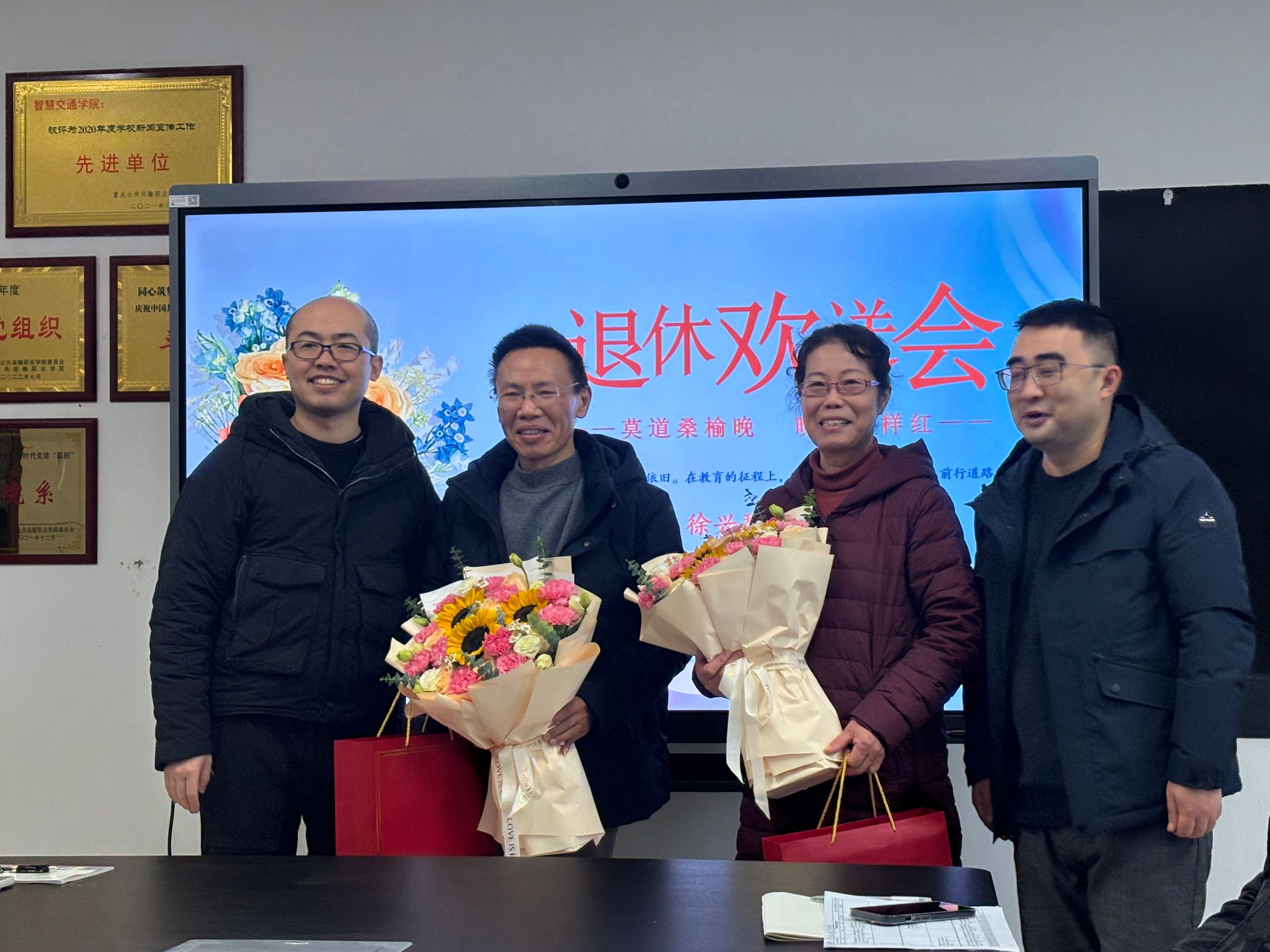 岁月如歌,情怀依旧。在教育的征程上,每一位教师都是照亮学生前行道路的灯塔,12月30日,智慧交通学院为徐兴碧老师和蒋德全老师举办了一场温馨而庄重的退休欢送会,共同回顾他们奉献教育事业的光辉岁月,送上学院最真挚的祝福。