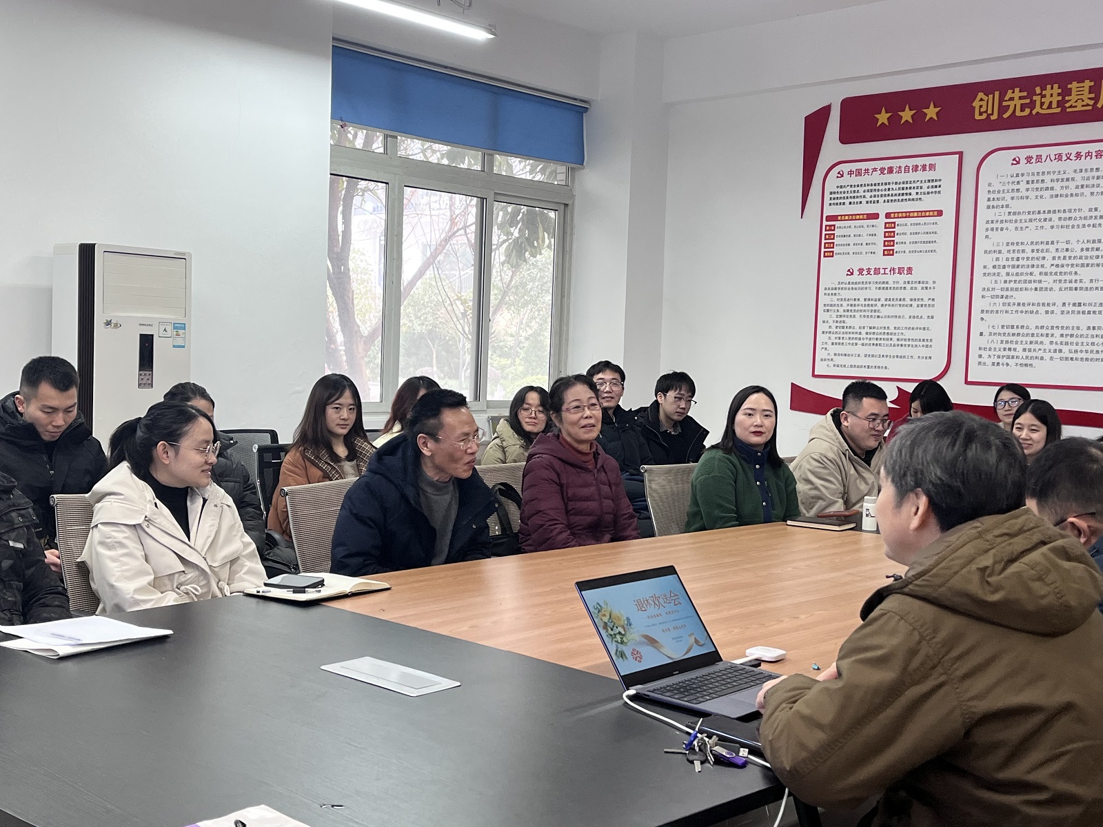 欢送会上,同事们分享着与徐老师、蒋老师共事的点滴,那些共同攻克教学难题的日子、那些在实训室里指导学生操作的场景,都成为了大家心中珍贵的回忆,言语中满是不舍与敬意。