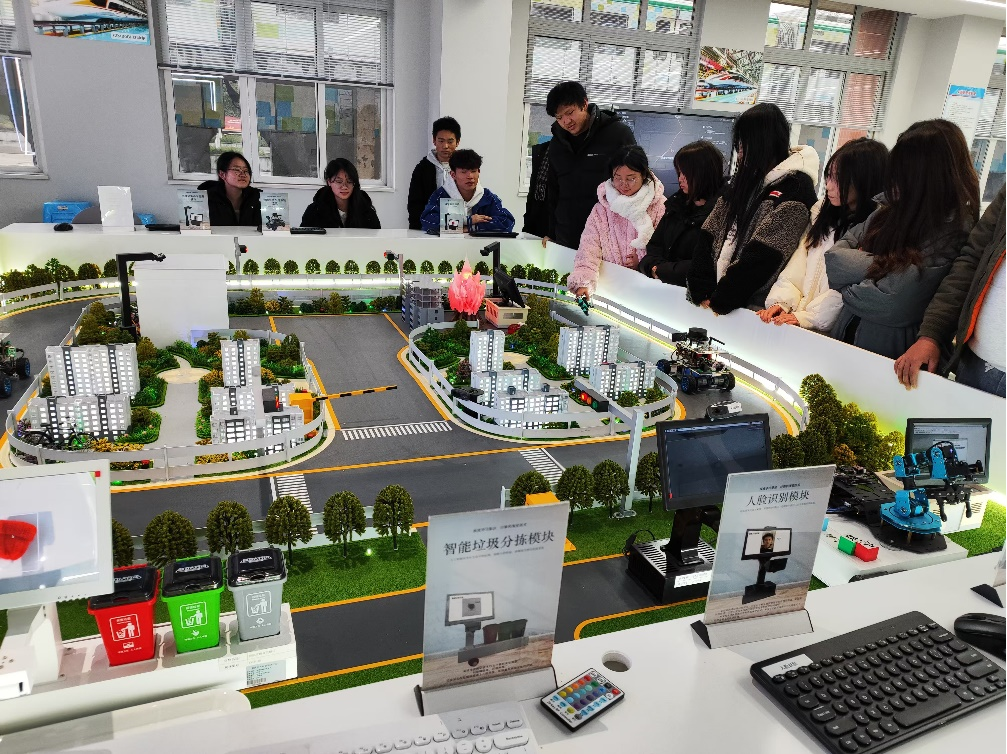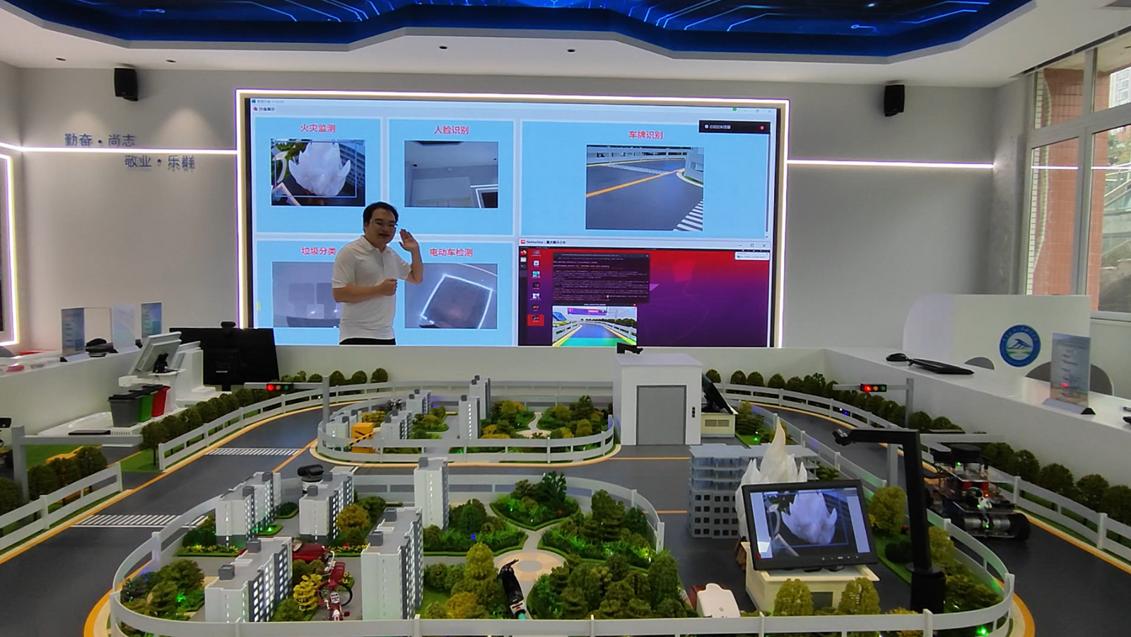 在课堂上,刘学虎老师充分发挥智慧城市社区沙盘的优势,将智能驾驶、社区建设、智能分拣、火灾检测等前沿且实用的元素生动地展现在学生们眼前。他巧妙引导学生们聚焦数字化发展与建设进程中的难题,鼓励他们运用所学专业知识探寻解决方案,从而使学生们深刻领悟到人工智能与大数据技术蓬勃发展的深远意义。同时,刘老师还将思政教育精髓融入课程之中,通过讨论智慧城市建设中的社会责任、伦理道德等问题,引导学生们思考如何在技术发展中保持人文关怀和社会责任感。