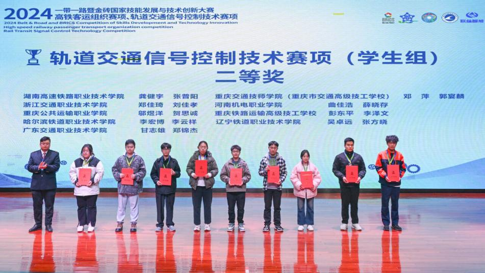 2024“一带一路”暨金砖国家技能发展与技术创新大赛轨道交通信号控制技术赛项12月28日至12月30日在广西柳州落幕。经过激烈的角逐,代表学校参赛的智慧交通学院师生分别获得学生组二等奖和教师组三等奖。