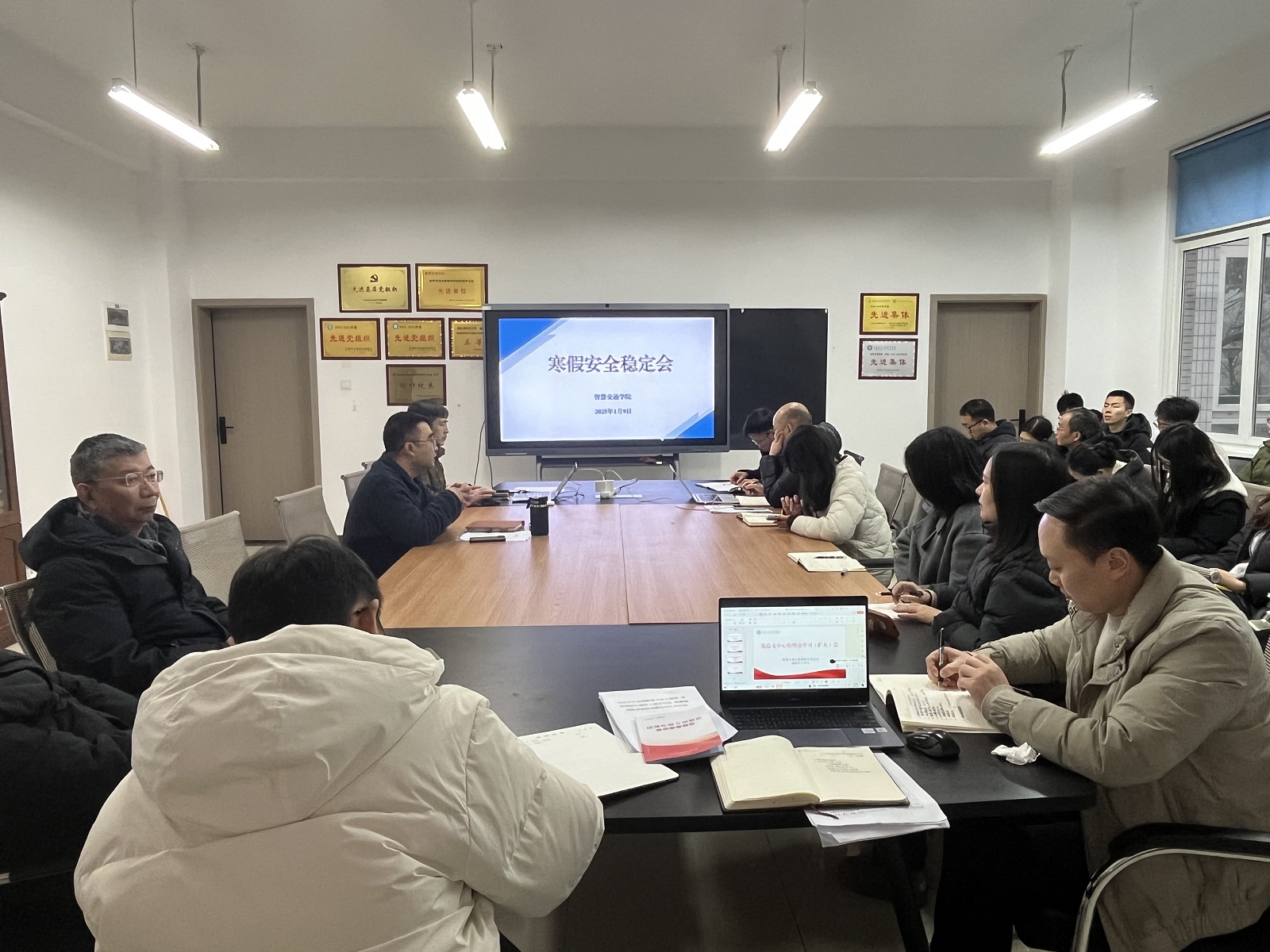 为切实保障寒假期间师生的安全稳定,智慧交通学院于近日组织召开了寒假前安全稳定工作专项会,学院全体教职工参会。