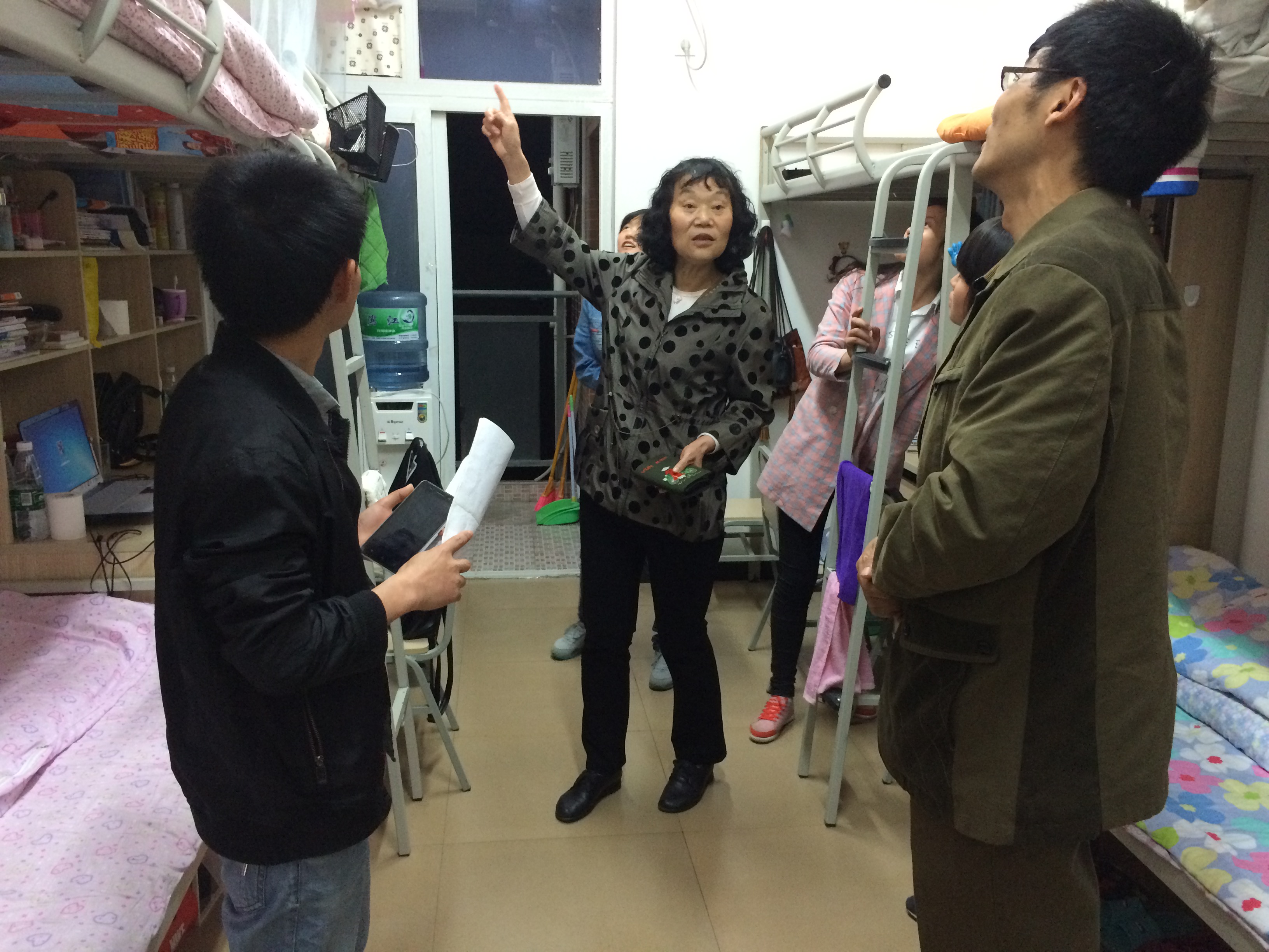 2015年4月19日晚21:30分,轨道车辆与机械系丁晓莹书记、罗强老师、李施其老师、蒋晶老师、邓万财老师一行对轨道车辆与机械系的男、女生寝室进行了检查。