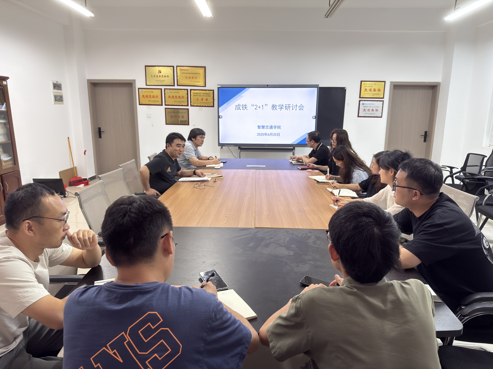 2025 年 6 月 20 日,智慧交通学院于 C101 会议室召开信号专业教学研讨会,聚焦成铁 “2+1” 教学内容融入专业人才培养路径展开深度研讨,旨在为铁路行业培育更多高素质专业人才。