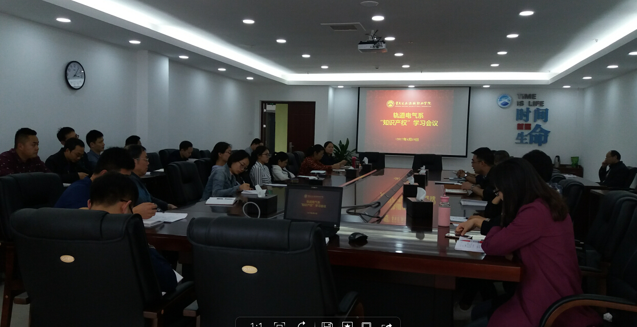 2017年4月19日15:00,轨道电气系在图书馆507召开"知识产权"学习会议,轨道电气系主任何友全、综合办公室主任牟刚、系部全体教师及辅导员参加了此次会议,会议由朱起源老师主持。