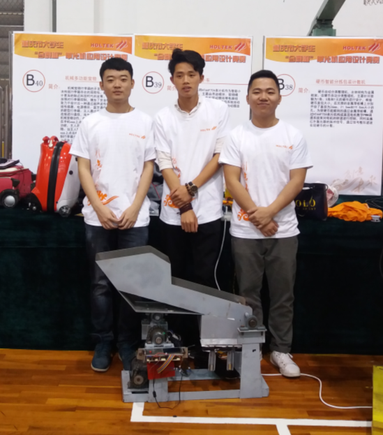 经过严格评审,我系王瑜琳、谢双义老师指导的熊奎,王烽宇,赖仁杰,邓鑫四位同学的参赛作品“硬币智能分拣包装计数机”荣获重庆市三等奖。