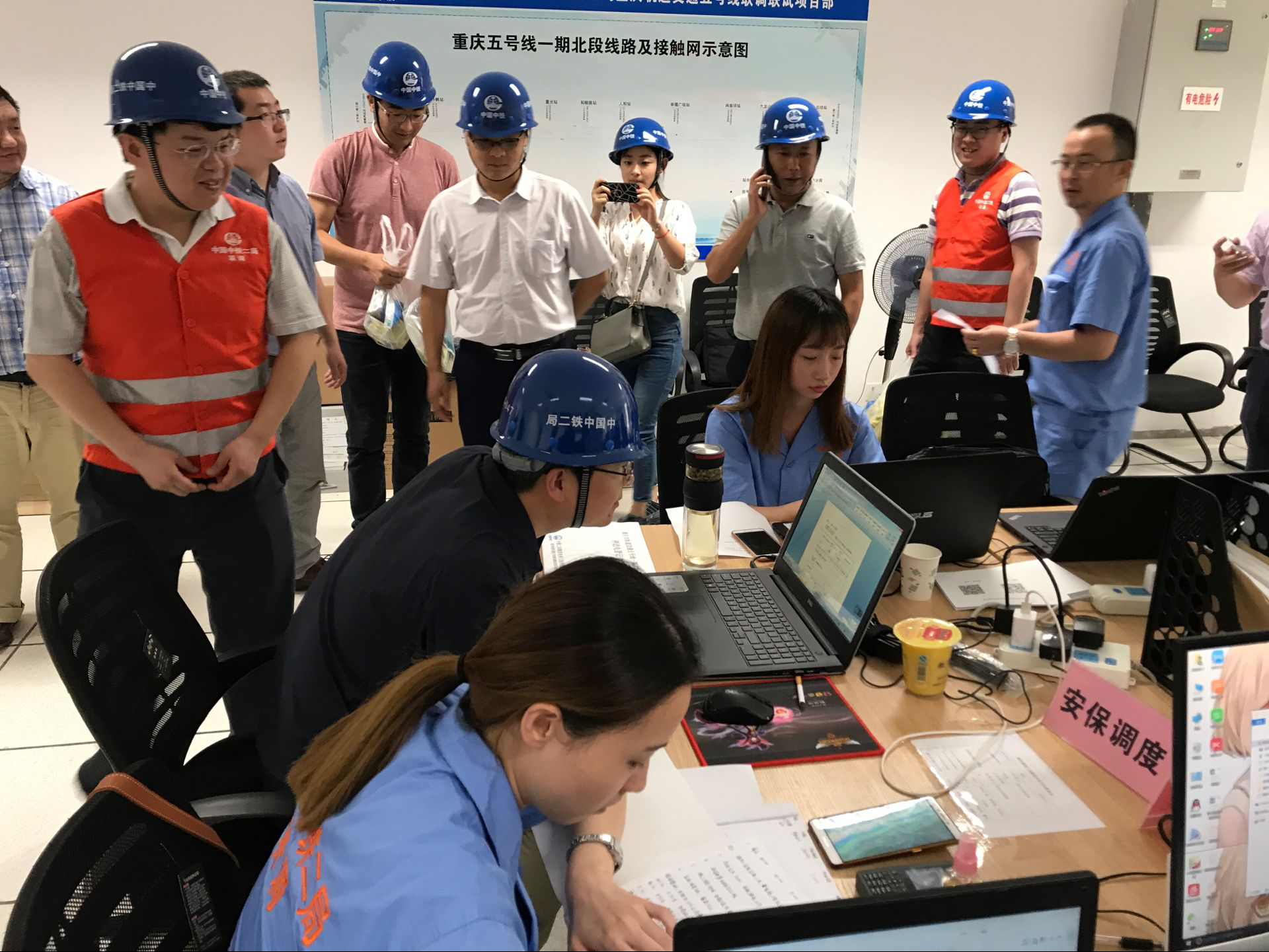 为了加强对学生实习工作的管理,加强实习就业基地质量,6月30日学院副院长刘畅率运输贸易系主任赵柱文、轨道电气系副主任陈兴劼、招生就业指导中心主任陈香一行四人到中铁二局集团电务工程有限公司专业实习基地走访调研,看望慰问在这里实习的学生和指导老师。中铁二局重庆轨道交通五号线站后总承包指挥部党委副书记朱普斌、中铁二局电务公司通信分公司总工程师兼联调联试项目经理吴操威、中铁二局重庆轨道交通五号线中央调度室安保调度梁正武热情接待了刘院长一行。