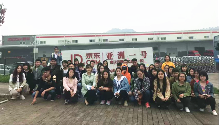图1 学生在京东亚洲一号库巴南分拨中心一区门口合影