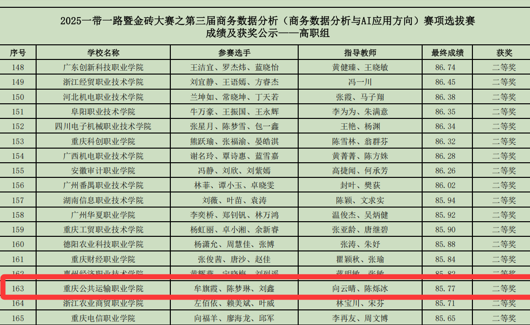 电子游戏统计与会计核算专业(财税大数据应用)学子在2025一带一路暨金砖大赛 商务数据分析赛项选拔赛中斩获佳绩