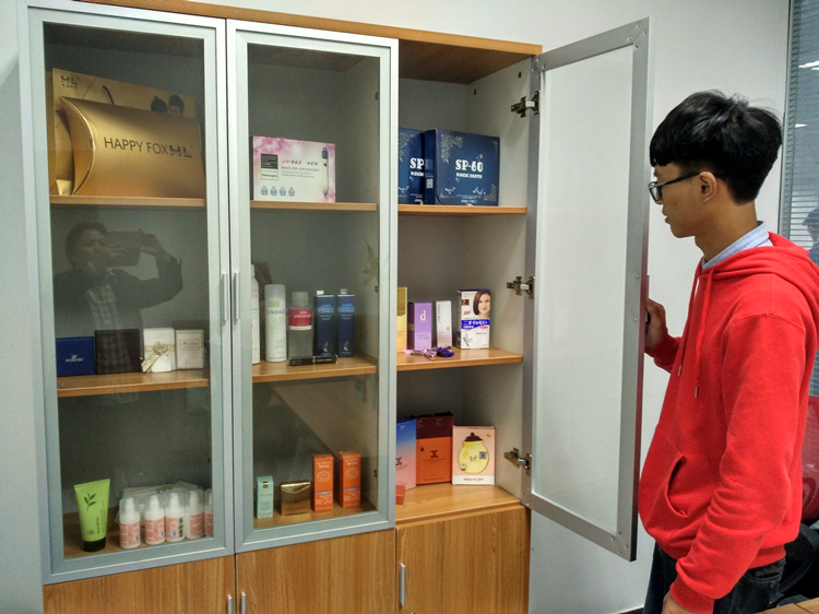 报关1602班杨海川同学在整理展示商品 创业让同学们把专业知识应用于实践,同时在创业过程中,还能学到很多书本上没有的知识,在实际中开拓视野,在经历中不断成长。“买全球,卖全球,通关我负责”,从下单到通关,国际货运等实行“door to door”一条龙服务。商品采用国际EMS直邮,专柜采购,保证正品,价格合理。到工作室直接购买还可以享受优惠价格和确认商品质量。也可以在淘宝店铺下单(Simine 海外shop)。