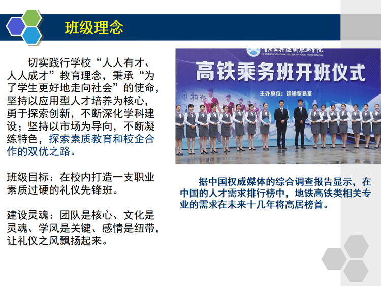 运输贸易学院 专业建设 课程建设 实践教学 科研成果 专业建设首页 > 运输贸易学院 > 教学科研 > 专业建设 > 运输贸易系职业素质教育示范班成果展示——高铁乘务班 来源:专业建设发布时间:2019-04-16 15:43访问量: