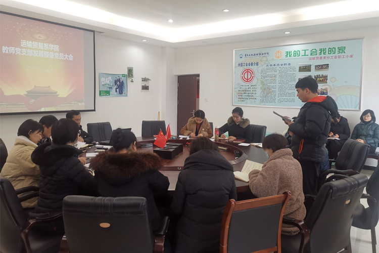 2020年11月17日,运输贸易学院教师党支部在党员之家A508会议室召开发展预备党员大会,会议由党支部书记龙讯主持。党支部组织委员王媛同志作出会议的具体要求,并报告出席支部会议人数。