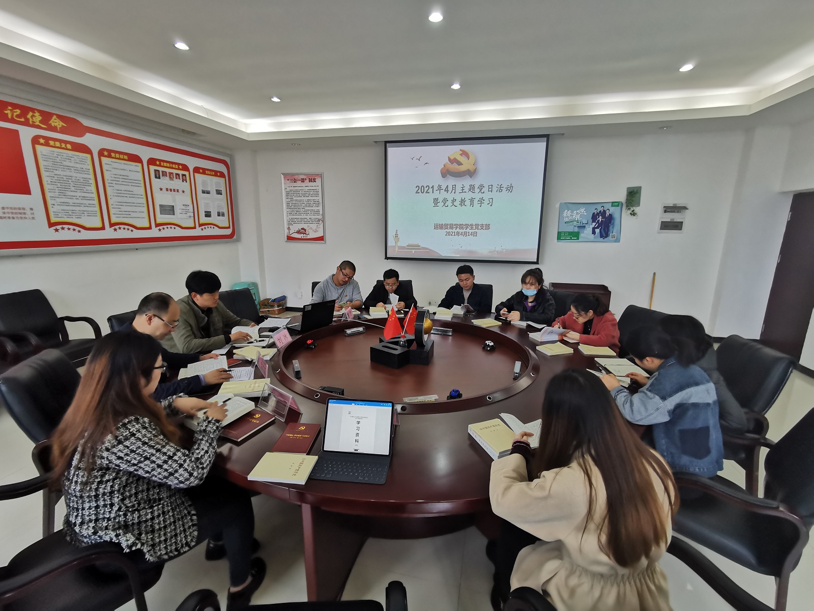 2021年4月15日13:30,运输贸易学院学生党支部在教学楼A508会议室开展4月主题党日活动暨党史学习教育系列会。