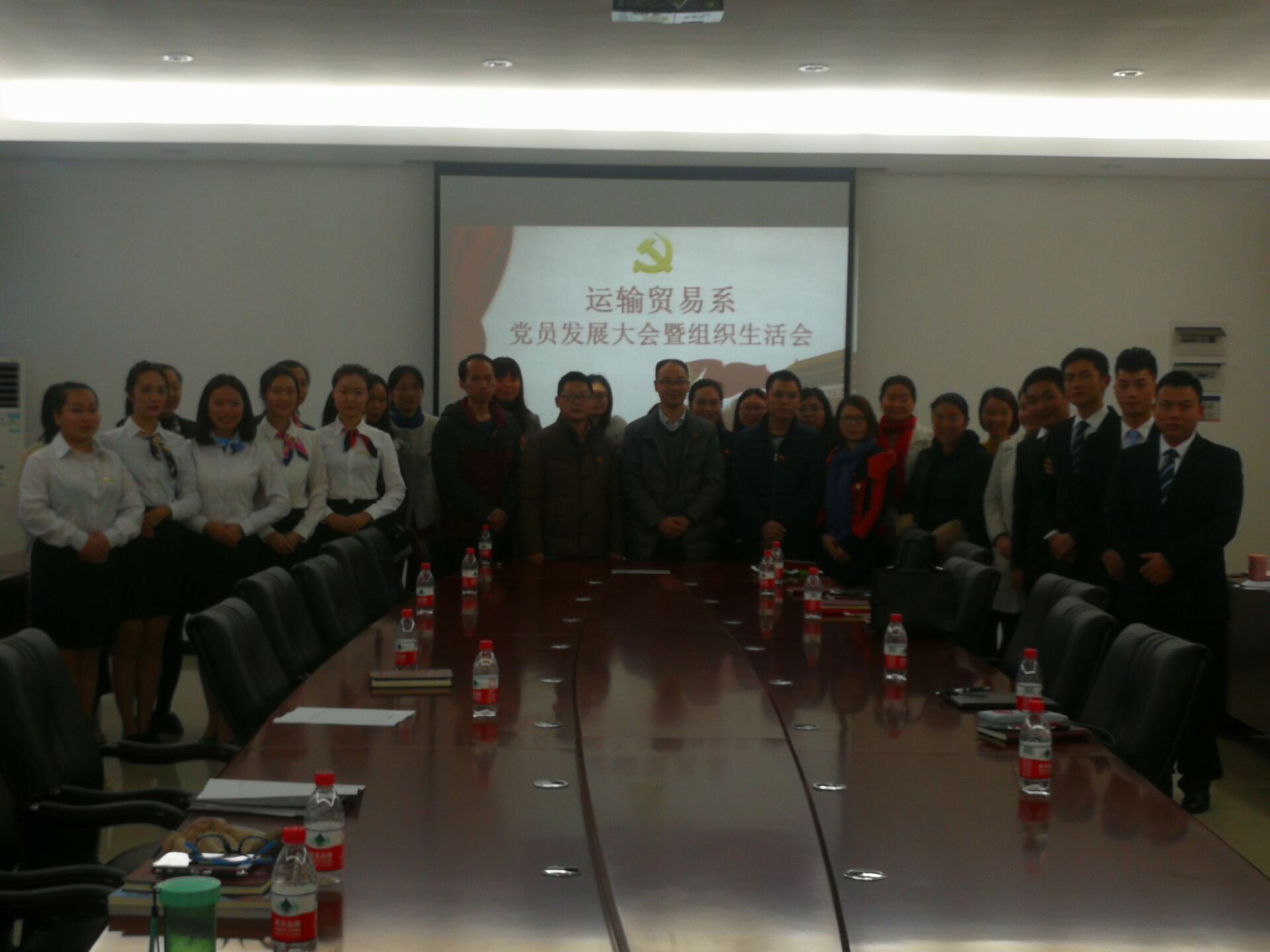 11月29日下午2点,输贸易系党支部在学院A401会议室举行组织生活会。参加会议的有学院副院长刘畅同志、我系党支部的28名正式党员,12名预备党员。会议由我系党支部宣传委员古曼筝主持。