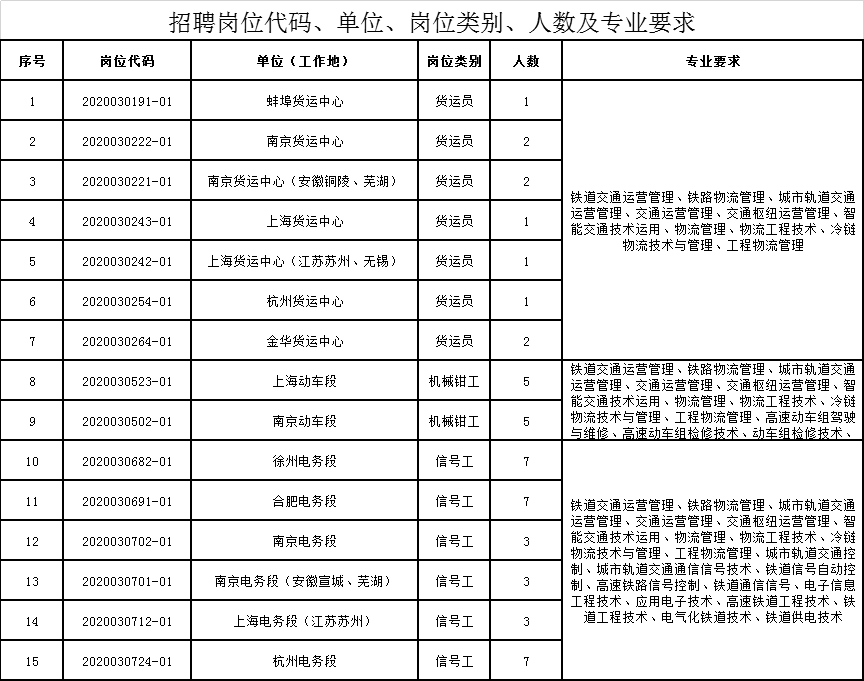 中国铁路上海局招聘2020年高等职业院校毕业生公告