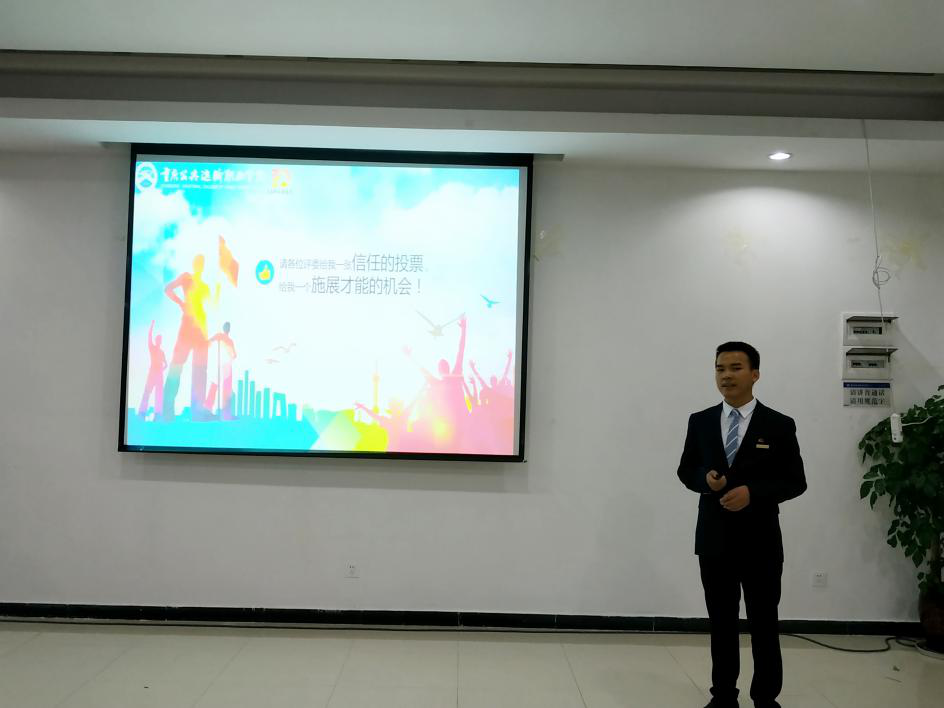 6月11日晚,汽车工程系、铁道与建筑工程系、人文艺术系联合团总支在A403会议室举行2019年团总支学生会干部换届选举大会。三系联合党总支副书记张睿、学工办主任谭琳浩、团总支书记李兆玉以及主席团学生干部担任本次大会评委。竞选中,12名竞选者依次上台演讲,结合自身特点和对竞选岗位的认知,给予学生会未来的期许以及改进方法。他们话语自信饱满,热情激昂,讲述了自己在团总支学生会的经历,以及对在工作中自己的成长,也表达了对于团总支学生会这个大家庭的热爱。竞选者精彩的演讲和出色的表现不时赢得大家热烈的掌声。