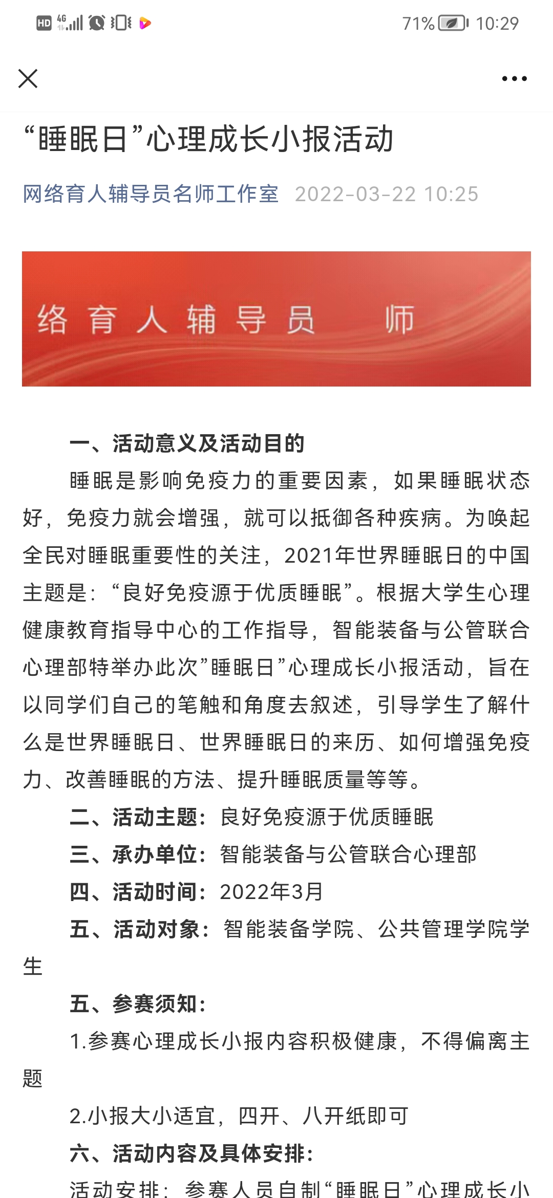 1.公共管理学院潘勇老师策划发起“睡眠日”心理成长小报活动,引导学生增强免疫力、提升睡眠质量。