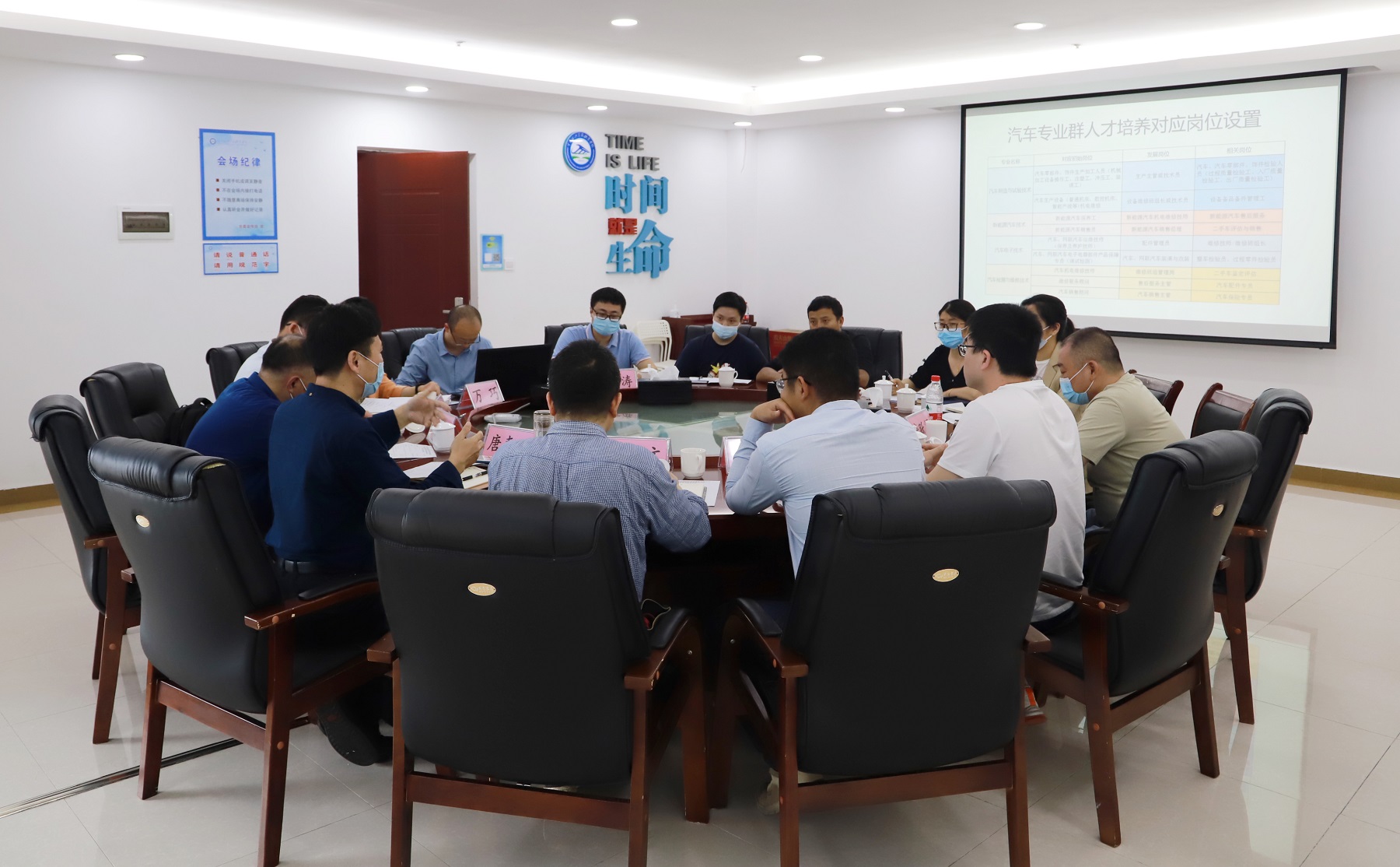 唐跃辉重点介绍了全国首个新能源汽车领域的首席技能大师工作室建设情况,并立足我国汽车产业强国发展战略,基于对新能源行业的发展前景,对学校汽车制造与试验技术、新能源汽车技术、汽车电子技术、汽车检测与维修技术等汽车专业群的人才培养方案从专业设置、课程整合、对应发展岗位等方面逐一提出修订意见。