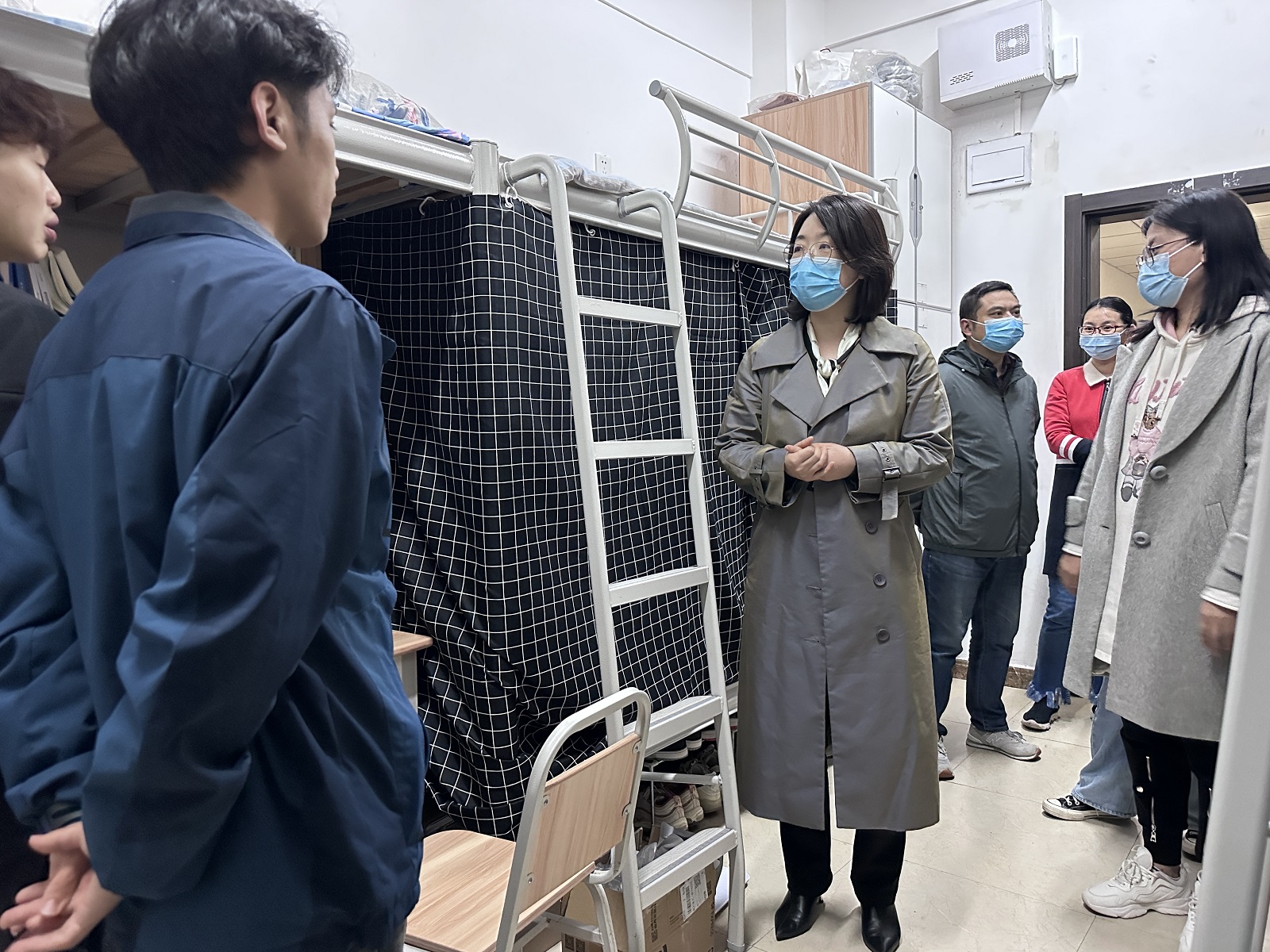 走进学生宿舍,马莉与学生亲切交谈,向同学们介绍当前疫情防控形势,叮嘱同学们加强时间管理、养成良好的学习和生活习惯,鼓励同学们调整学习方式方法适应线上线下同步教学,在谈到专业学习和未来职业规划时,勉励同学们坚定专业发展信心,练就过硬本领,展现青春担当。