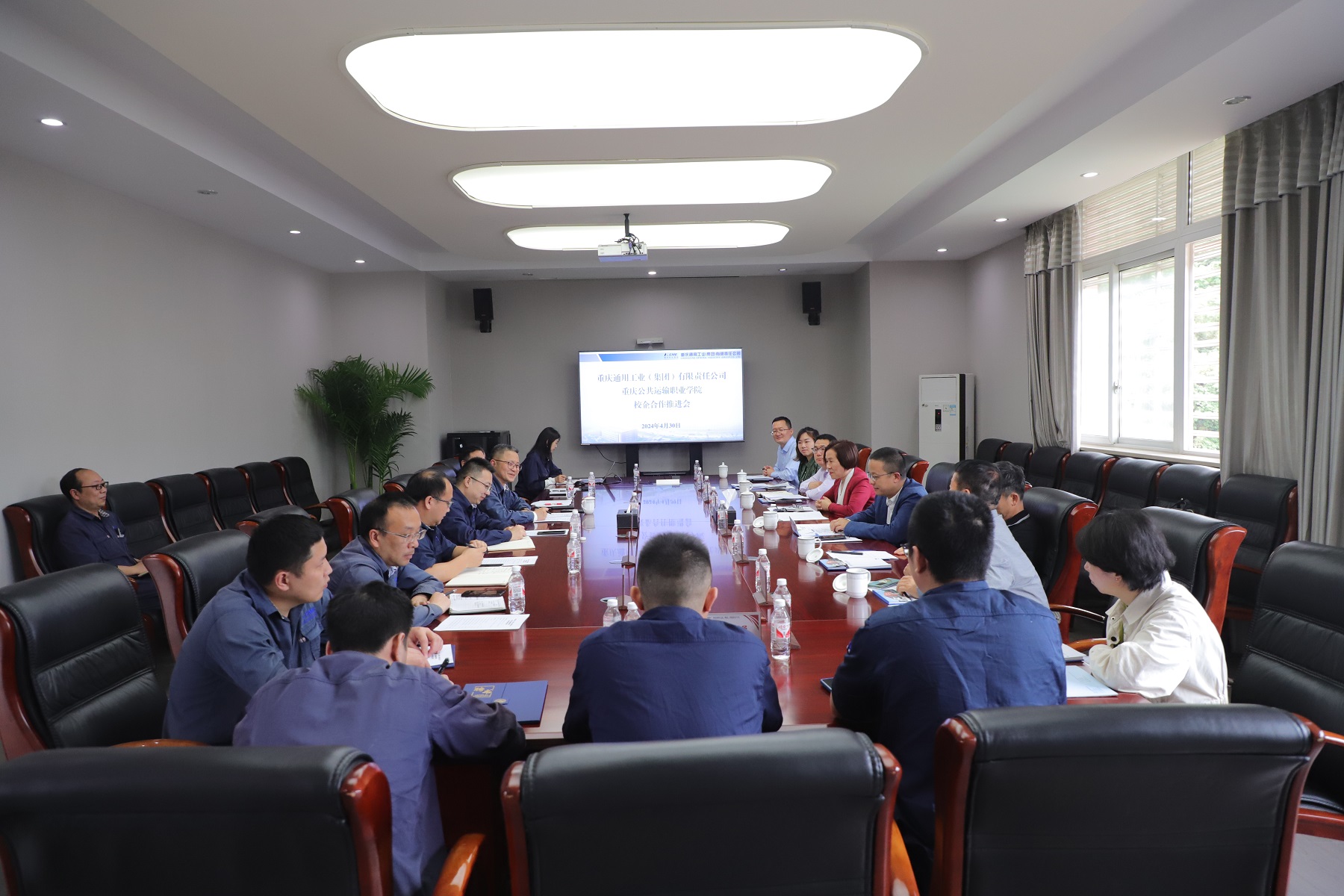 为深入贯彻落实现代职业教育体系建设改革,打造市域产教联合体,4月30日下午,学校在重庆通用工业(集团)有限公司会议室召开校企合作工作推进会。重庆通用工业集团有限公司董事长李华、纪委书记兼工会主席潘海滨,学校党委书记彭超、纪委书记兼工会主席杨睿及双方相关部门负责人参加了本次推进会。