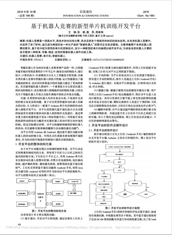 智能装备学院 实训设施 教科研成果 技师班平台 教科研成果首页 > 智能装备学院 > 教学科研 > 教科研成果 > 论文《基于机器人竞赛的新型单片机训练开发平台》 来源:教科研成果发布时间:2018-01-09 15:26访问量: 论文《基于机器人竞赛的新型单片机训练开发平台》,王谦、张睿、詹苏、简春梅,《信息通信》2016年第10期。