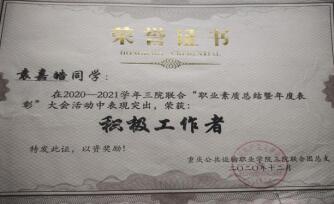 袁嘉皓始终以提高自身的综合素质和职业能力为目标,树立正确的世界观、人生观、价值观。