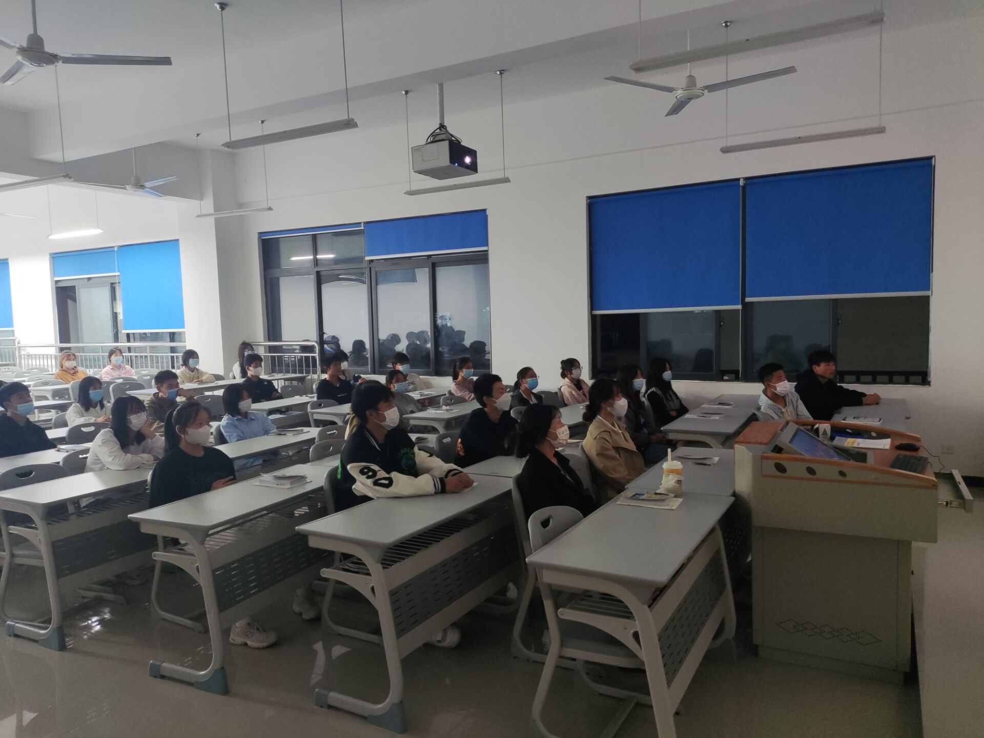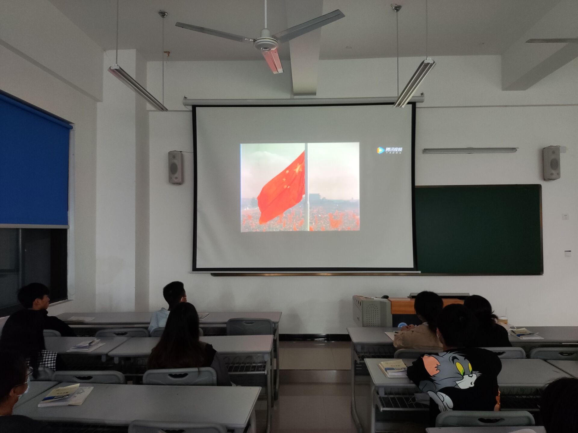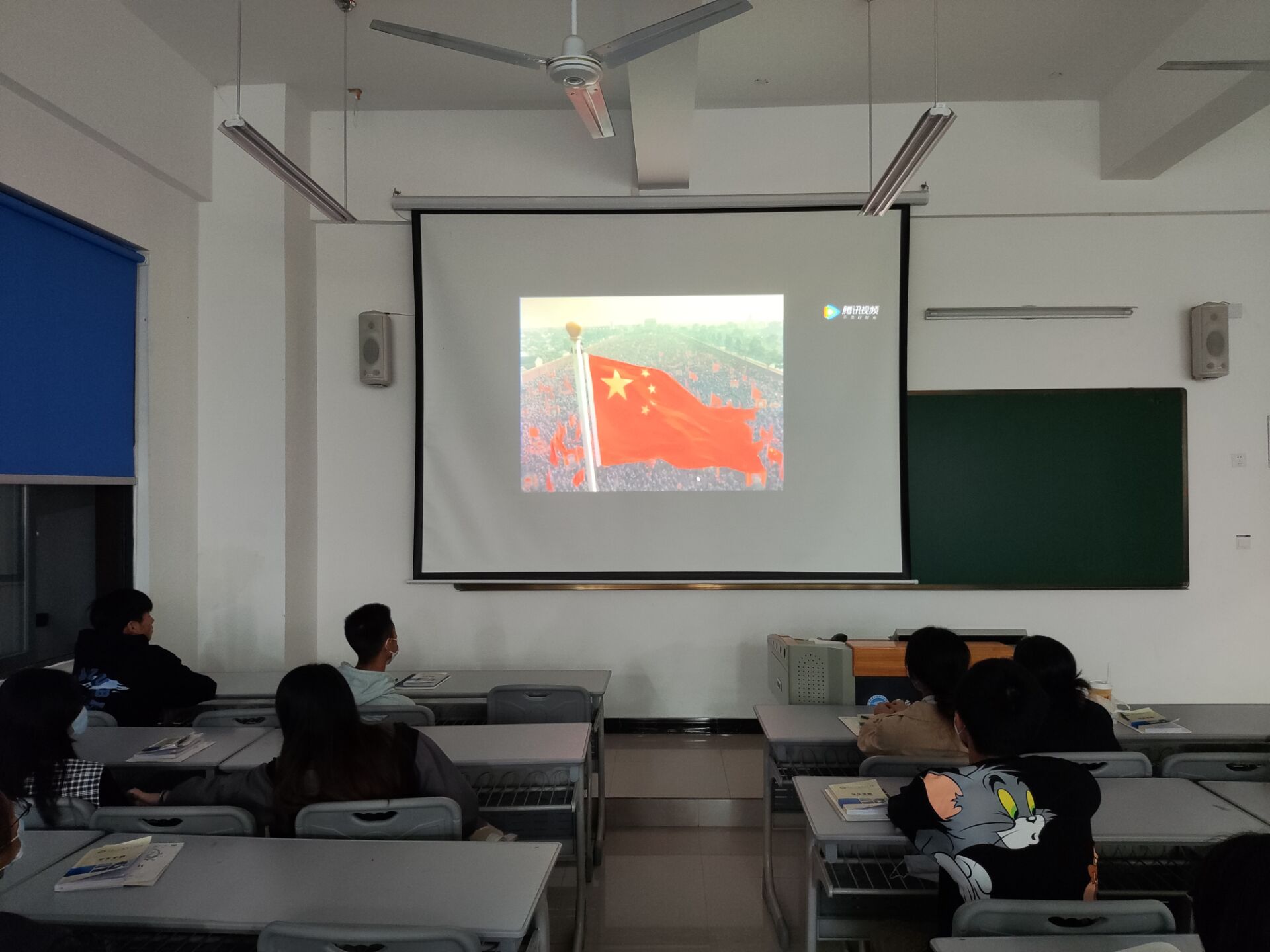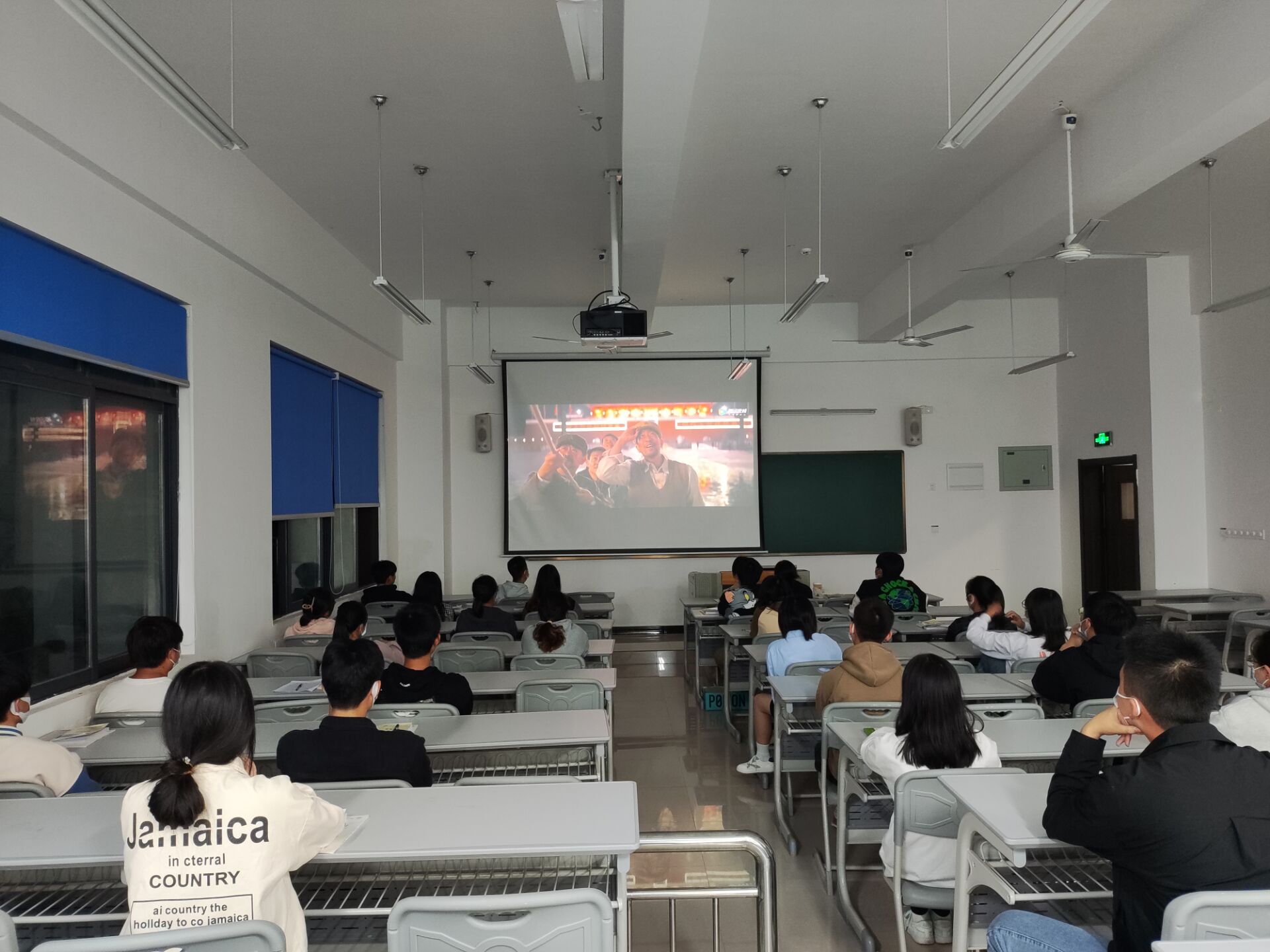 同学们怀着敬畏的心情,正襟危坐观看电影。《我和我的祖国》是由陈凯歌等七大导演联合执导,通过7个小故事,串联起祖国的7个大事件,讲述了7组普通人与祖国大事件相关的经历,通过小人物来见证大时代,是新中国70岁生日的献礼大片。