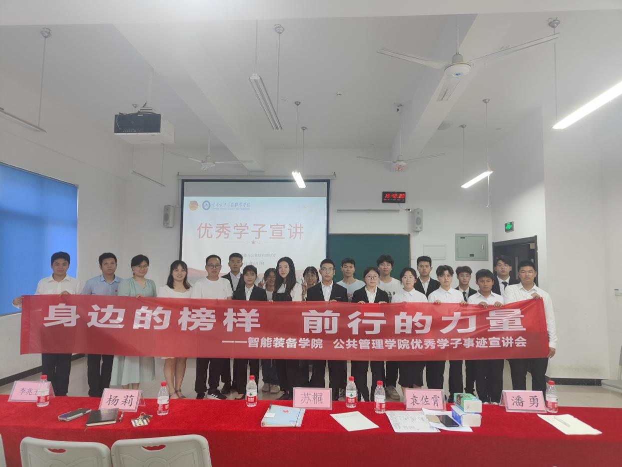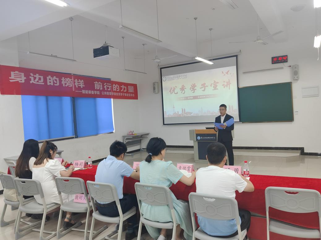 智能装备学院 团支部体系 成果展示 通知公示 成果展示首页 > 智能装备学院 > 学工之家 > 成果展示 > 智能装备学院开展“身边的榜样 前行的力量”优秀学子宣讲活动 来源:成果展示发布时间:2023-06-08 22:21访问量: 为深入学习贯彻党的二十大精神,全面落实立德树人根本任务。6月8日,智能装备学院优秀学子宣讲团成员在新校区A106开展了“身边的榜样 前行的力量”主题宣讲。 12名优秀学子结合学习党的二十大精神,在宣讲中讲述自己的励志故事,虽然各自经历不同,但都展现了学生不懈奋斗、自强感恩的青春风采。 智能装备与公管联合团总支书记苏桐,辅导员潘勇、李兆玉、杨莉、袁佐霄出席本次宣讲活动。 (图/ 刘炫、宋西健 文/刘炫)