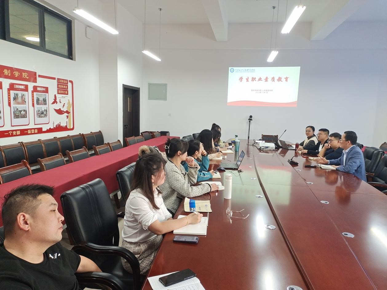 会上,张睿作研讨总结,要求开展学生工作要紧扣人才培养方案,切实开展能提升学生专业技能和综合素质的学生活动;深耕学生职业素质教育,创建职业素质示范班、学生职业素质画像等;强化与企业的互动交流,积极筹备第十一届辅导员素质能力大赛。
