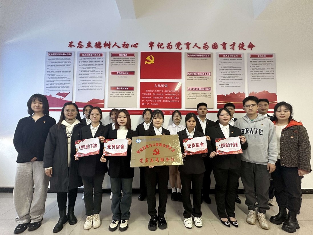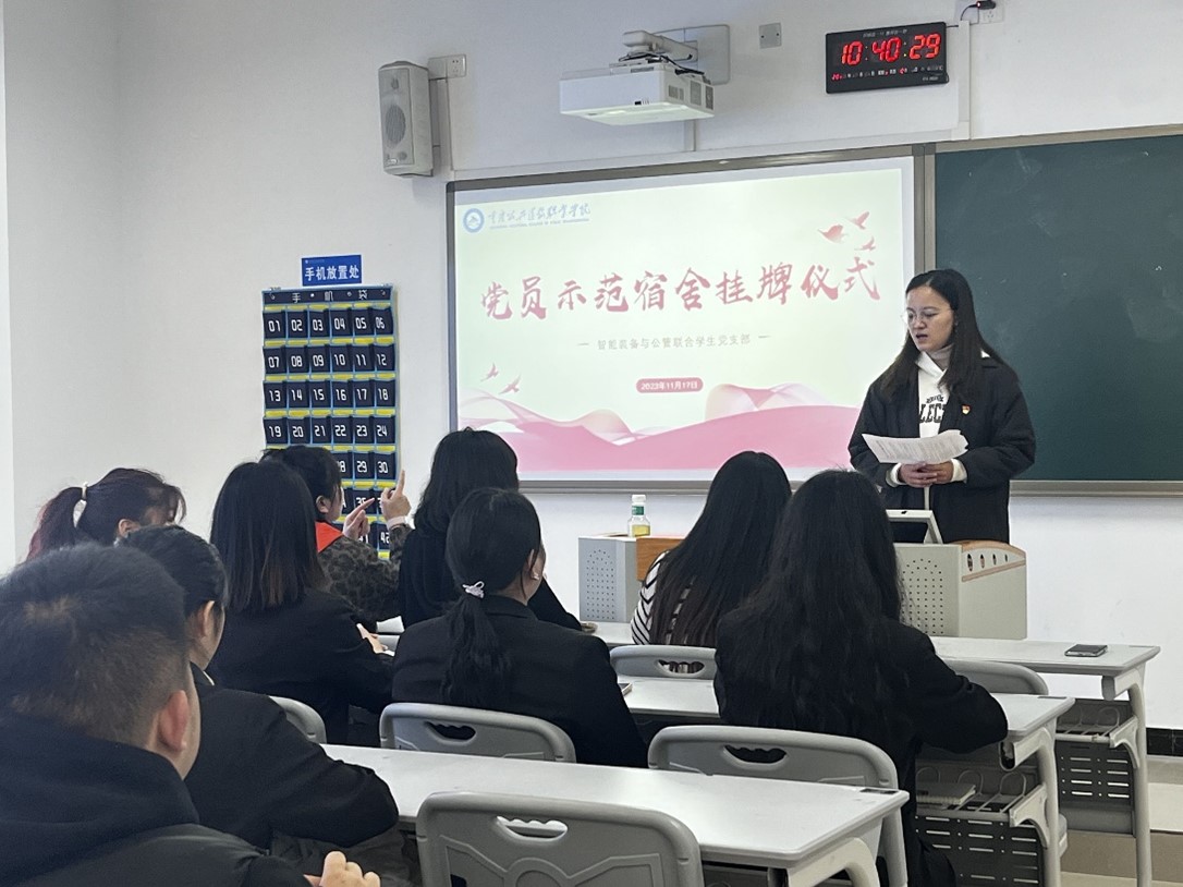 为提高学生党员的身份意识和责任意识,发挥党建引领和党员先锋模范作用,2023年11月17日,智能装备与公管联合学生党支部党员宿舍挂牌启动仪式在新校区隆重举行。
