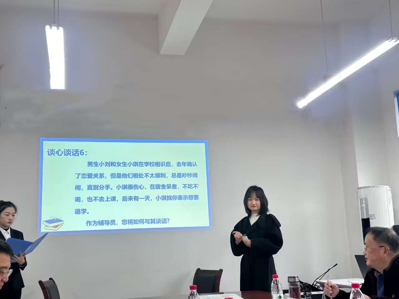 望闻问切精施治谈心谈话解难题。谈心谈话以“一对一”模拟访谈的方式开展,主要考察辅导员对学生特征、学生成长成才规律的了解把握程度,对学生的教育引导能力、解决理论困惑和实际问题的能力等。参赛辅导员在谈话中循循善诱、春风化雨,师生共同上演了日常深入交流场景。案例研讨展风采,同台竞技促提升。 案例研讨以“我提问、你回答”的方式开展,主要考察辅导员综合运用理论分析问题、研判问题、解决问题的能力。参赛辅导员结合自身工作经验,围绕学生中热点、难点问题共同辨析原因、研讨对策、总结规律,努力追求问题解决的科学性、实效性。