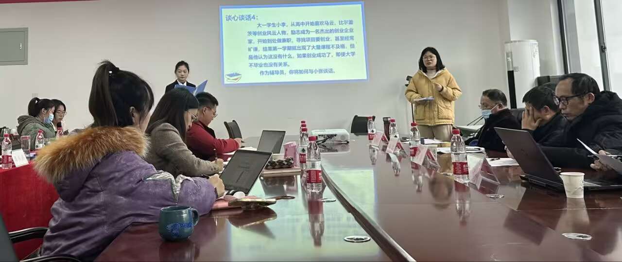 为深入学习贯彻党的二十大精神,认真贯彻落实习近平新时代中国特色社会主义思想,不断提升辅导员的理论水平、职业素养和工作能力。智能装备学院、公共管理学院于2024年1月4日,在新校区A513开展第十一届辅导员素质能力大赛初赛。本次比赛设置了谈心谈话、案例研讨、真知灼见三个项目,智能装备学院袁昊、潘勇、袁佐霄、高春月、张郁忻,公共管理学院李龙、李兆玉、高语、罗雪梅、肖露兰共10名辅导员参加