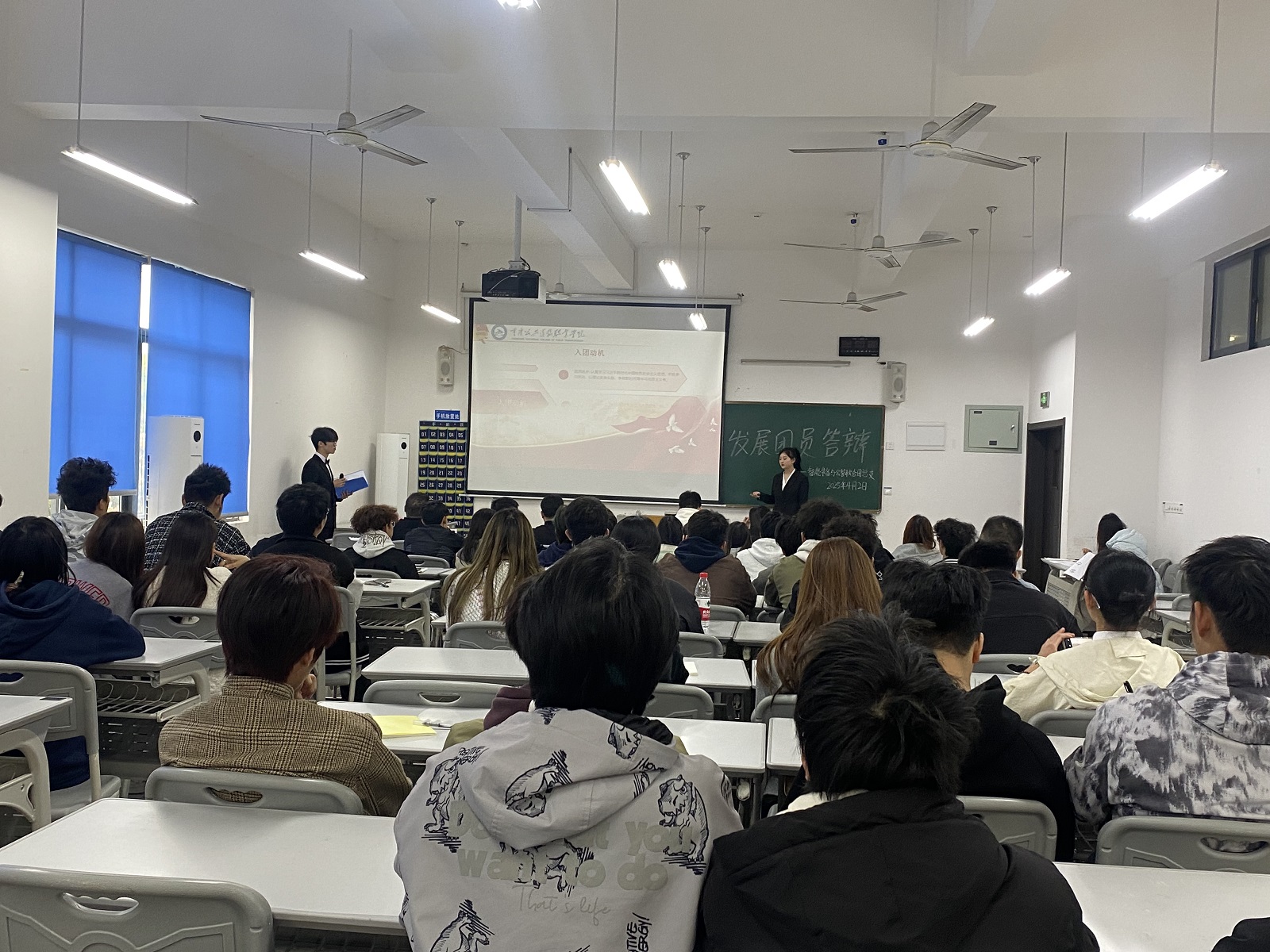 经笔试初审,共计24名积极分子入围答辩。在个人汇报环节,同学们信念坚定,围绕对共青团的认识、入团动机及未来方向展开阐述。他们以真挚话语倾诉对团组织的向往,用实际行动诠释新时代青年的责任担当。