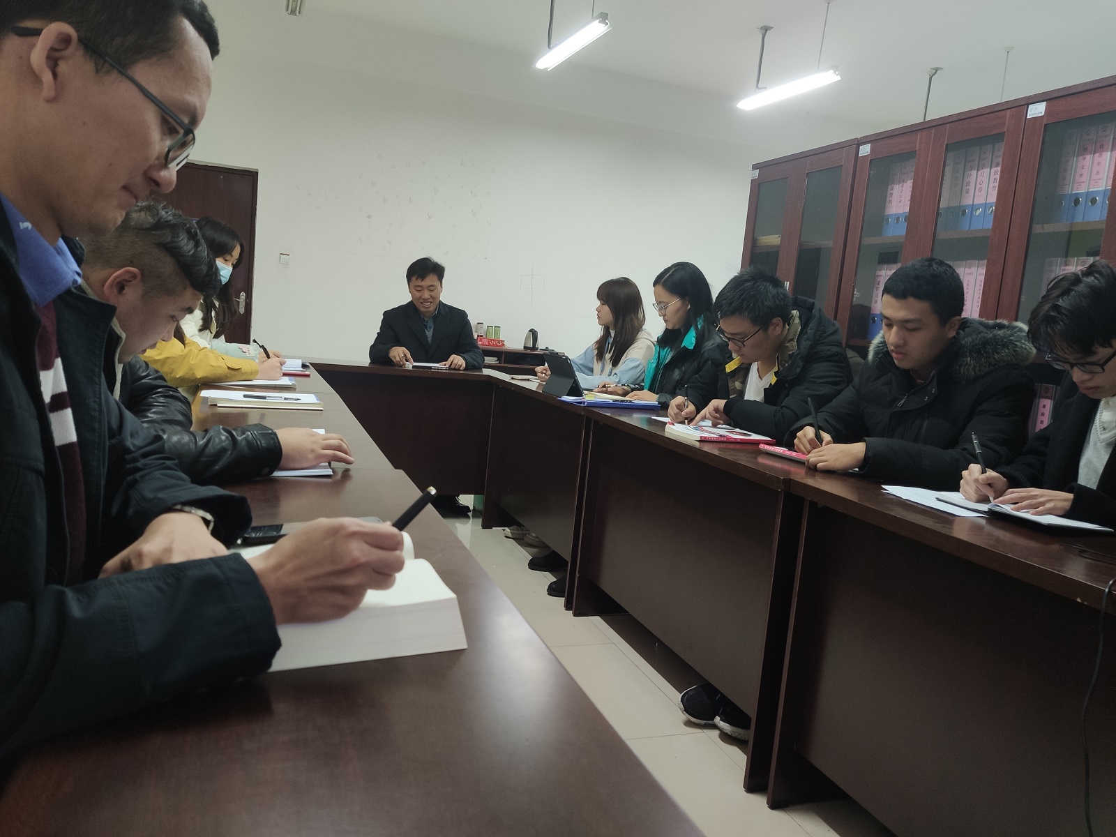 唐春林院长深入讲解了十九届五中全会精神、“两个一百年”奋斗目标,特别强调要坚持四个自信,关心国家、社会和学院的发展;全体党员及入党积极分子要以榜样为引领,以身作则,加强舆论引导,不信谣不传谣。
