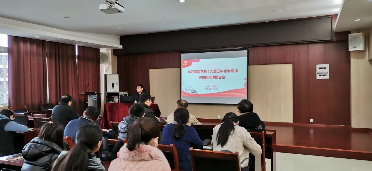 按照学院《党的十九届五中全会精神进校园宣讲工作方案》安排,12月4日下午,学院唐春林副院长在教学楼A403会议室为智能装备学院、铁道与建筑学院、公共管理学院全体教师及辅导员宣讲党的十九届五中全会精神。