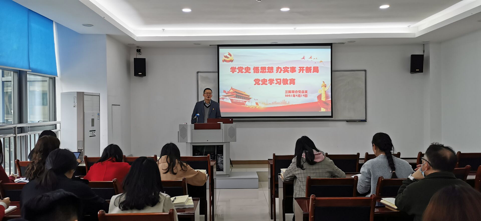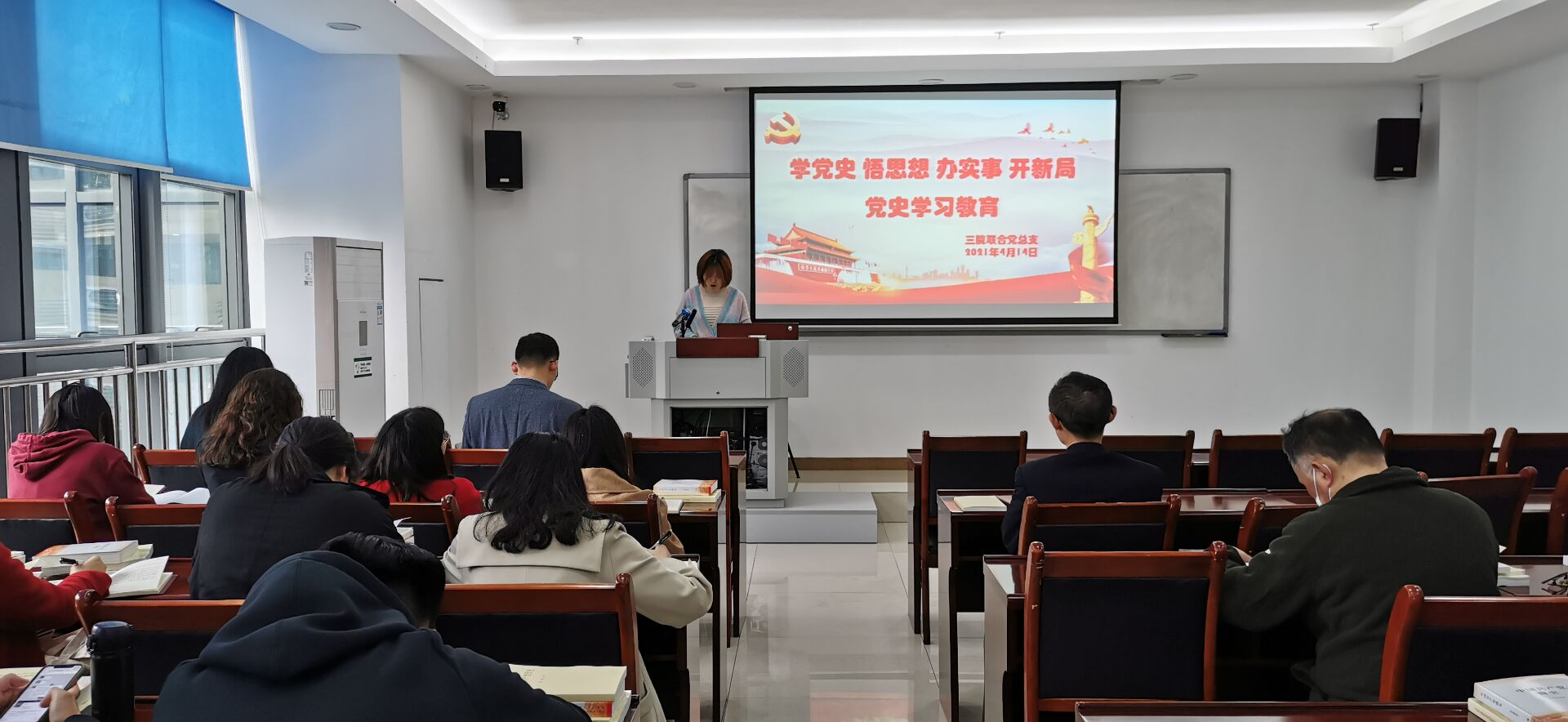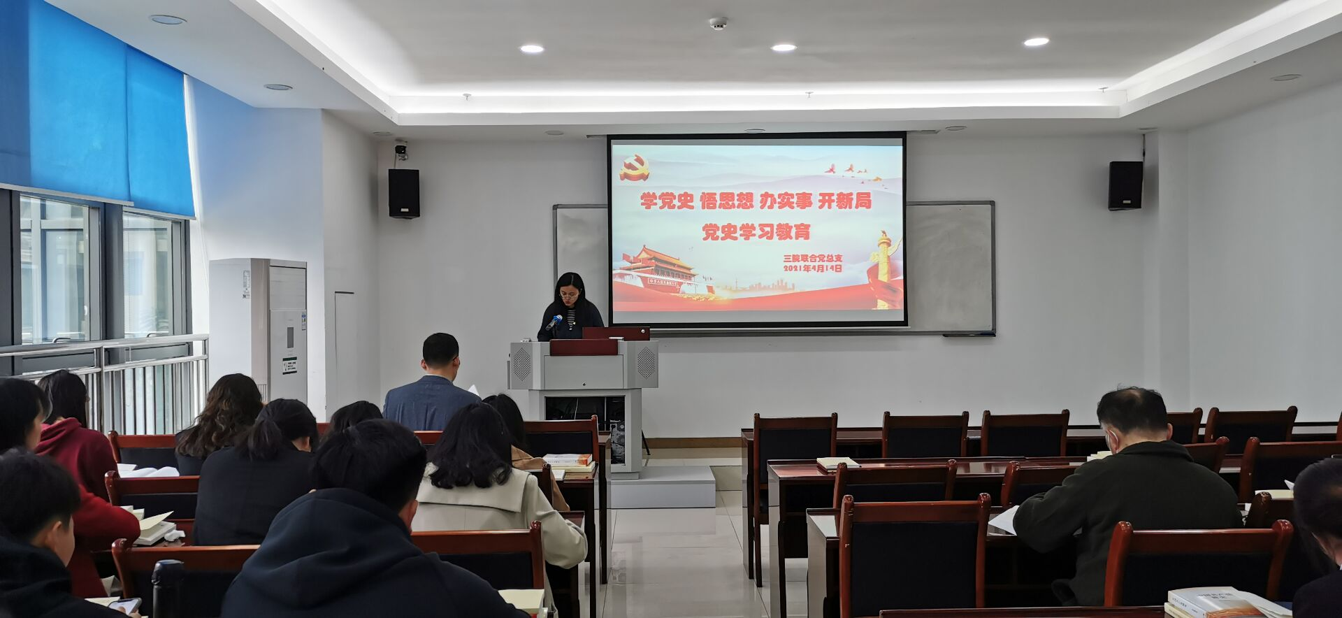 2021年4月14日(星期三)14:30,三院联合党总支组织全体党员在办公楼3楼会议室开展了“学党史、悟思想、办实事、开新局”的党史学习教育。