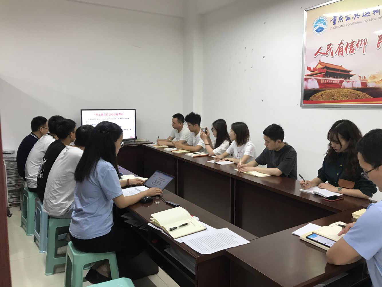 胥迅同志领学《中共重庆市委教育工作委员会关于深入学习贯彻习近平总书记在清华大学考察时重要讲话精神的通知》(渝教工委发〔2021〕32号),潘勇同志领学党史“抗日英雄赵一曼”的事迹与书信,殷镭同志领学人民日报文章《职业教育前景广阔大有可为》。全体学生党员和积极分子表示,要坚定前进信心,努力成为堪当民族复兴重任的时代新人,让青春在为祖国、为民族、为人民的不懈奋斗中绽放绚丽之花。