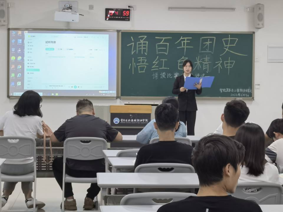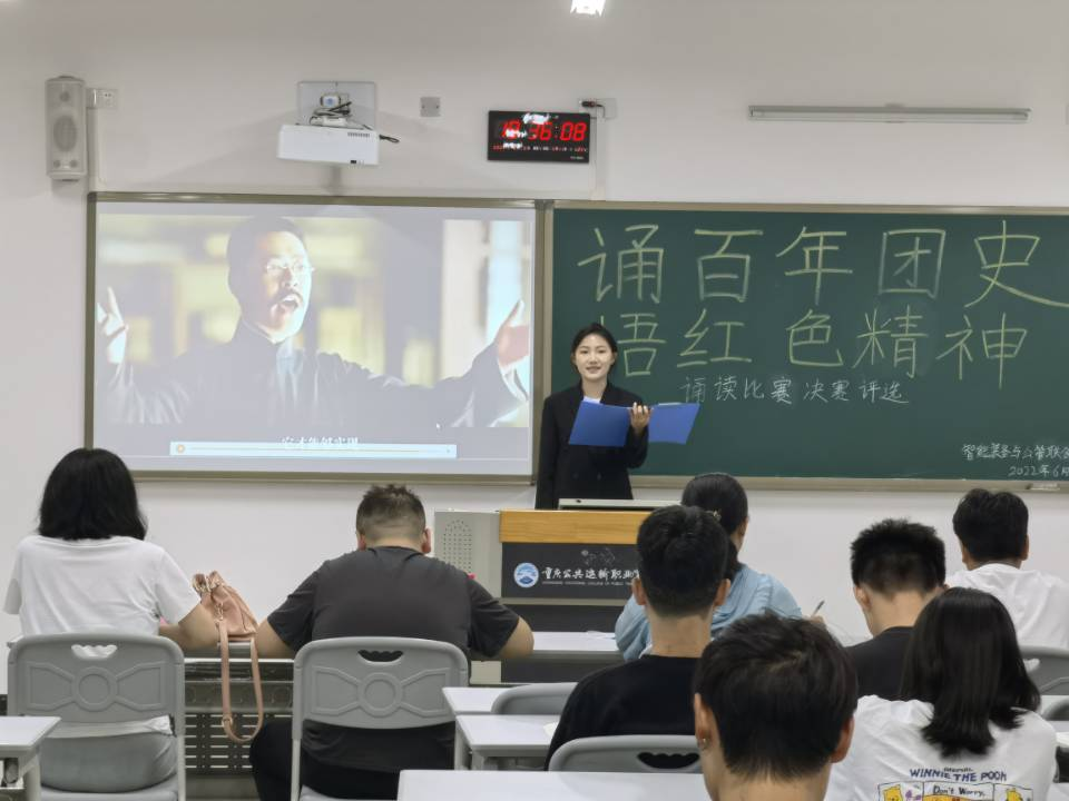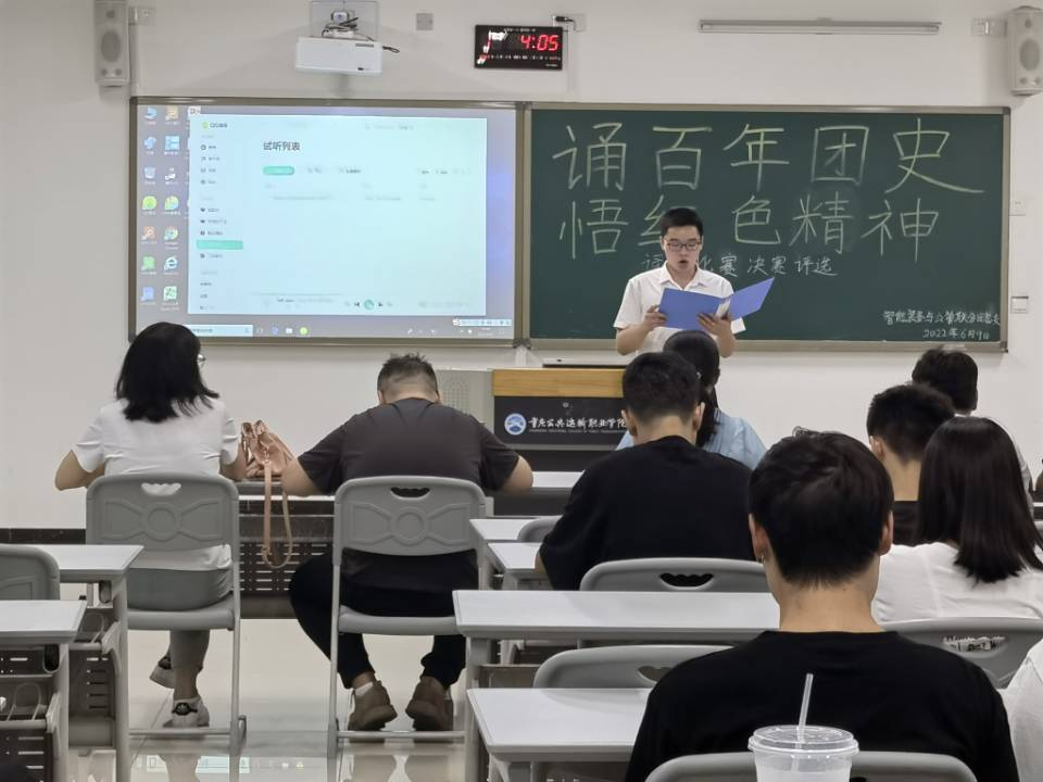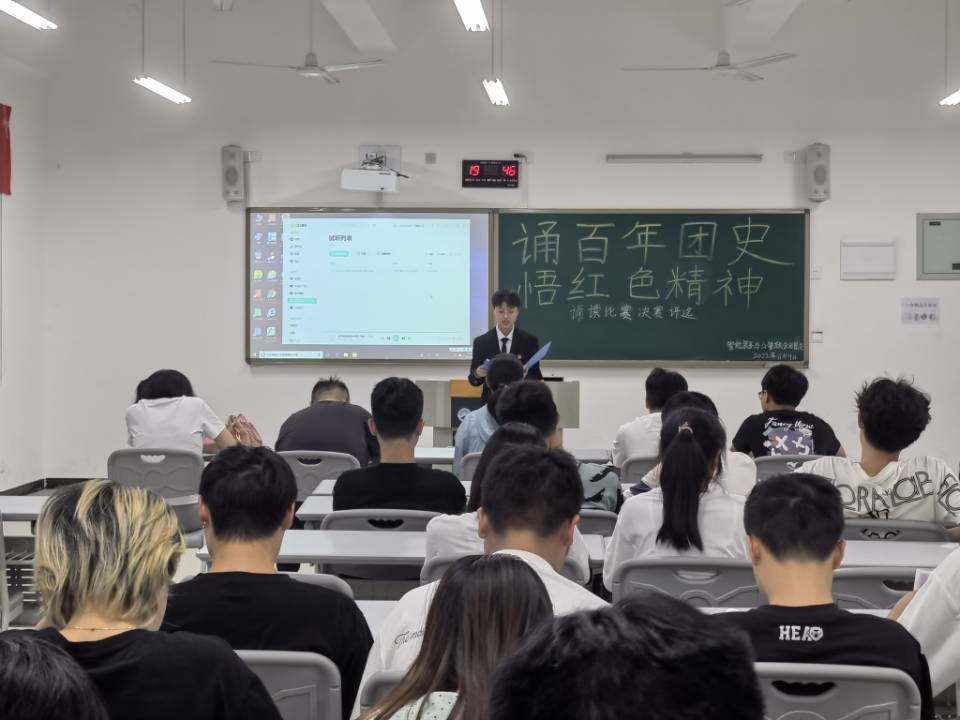 6月10日,智能装备与公管联合学院在新校区教学楼B106举行了“诵百年团史,悟红色精神”诵读决赛。