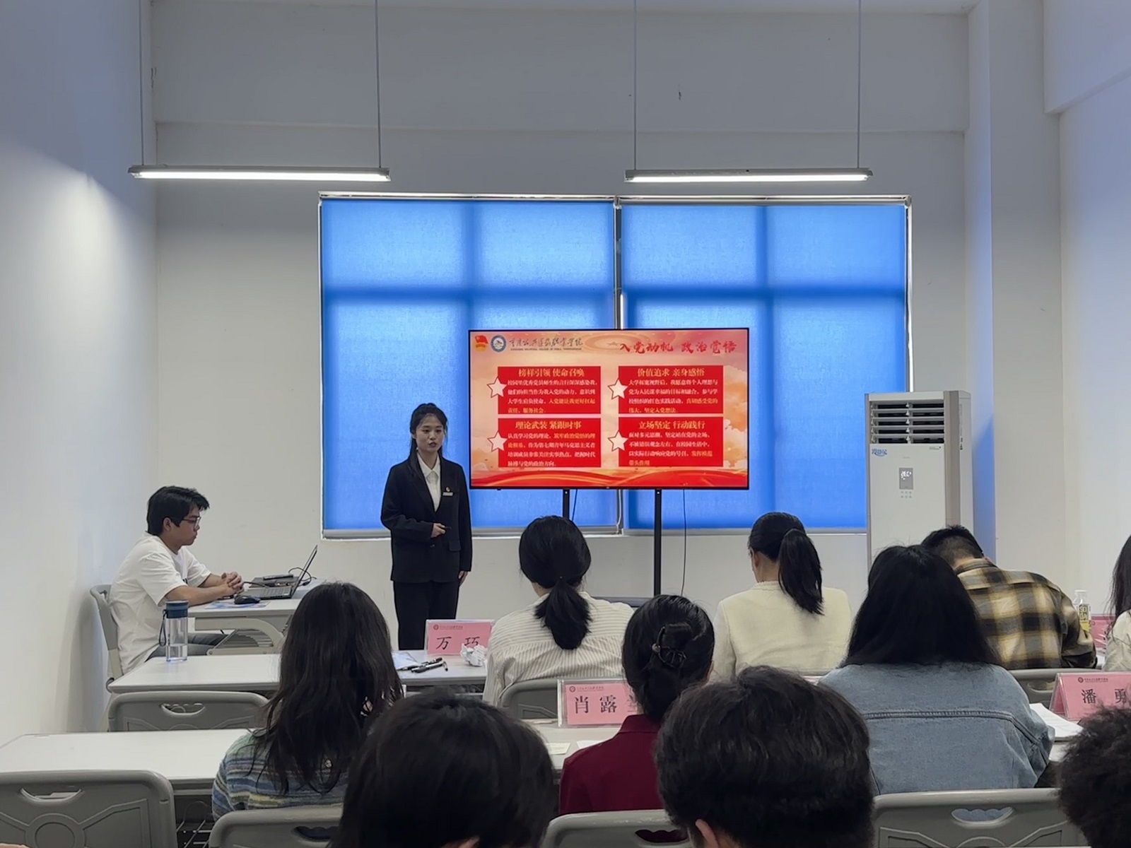 本次答辩会秉持公平、公正、公开的原则,严格按照既定流程有序开展。答辩过程中,拟发展对象围绕入党动机、党的理论知识、时事政治以及自身现实表现等方面依次上台进行陈述。他们结合自身实际,从不同角度阐述了对党的认识、入党初心以及在学习、生活中的实践经历,充分展现了积极向党组织靠拢的决心与信心。