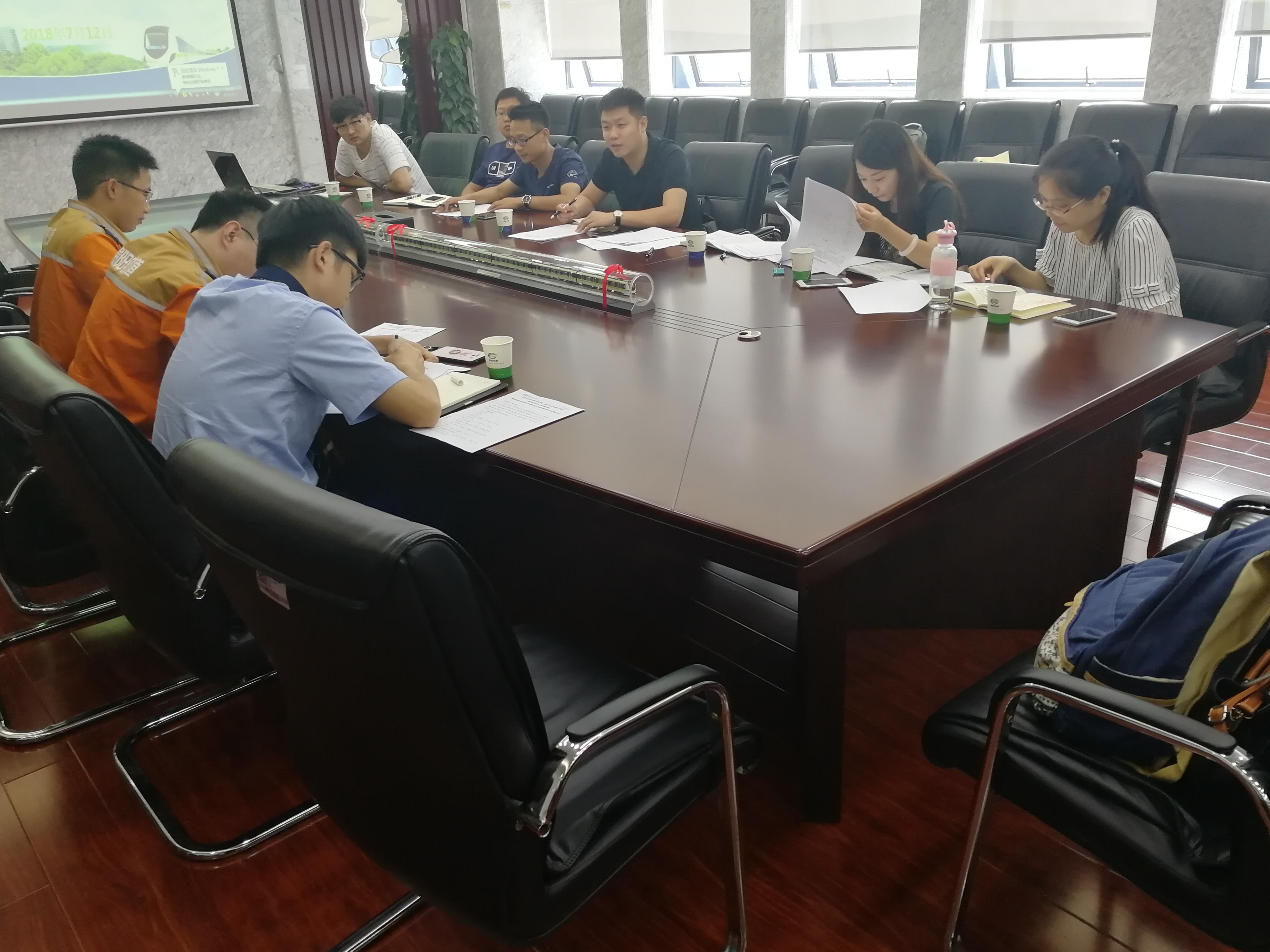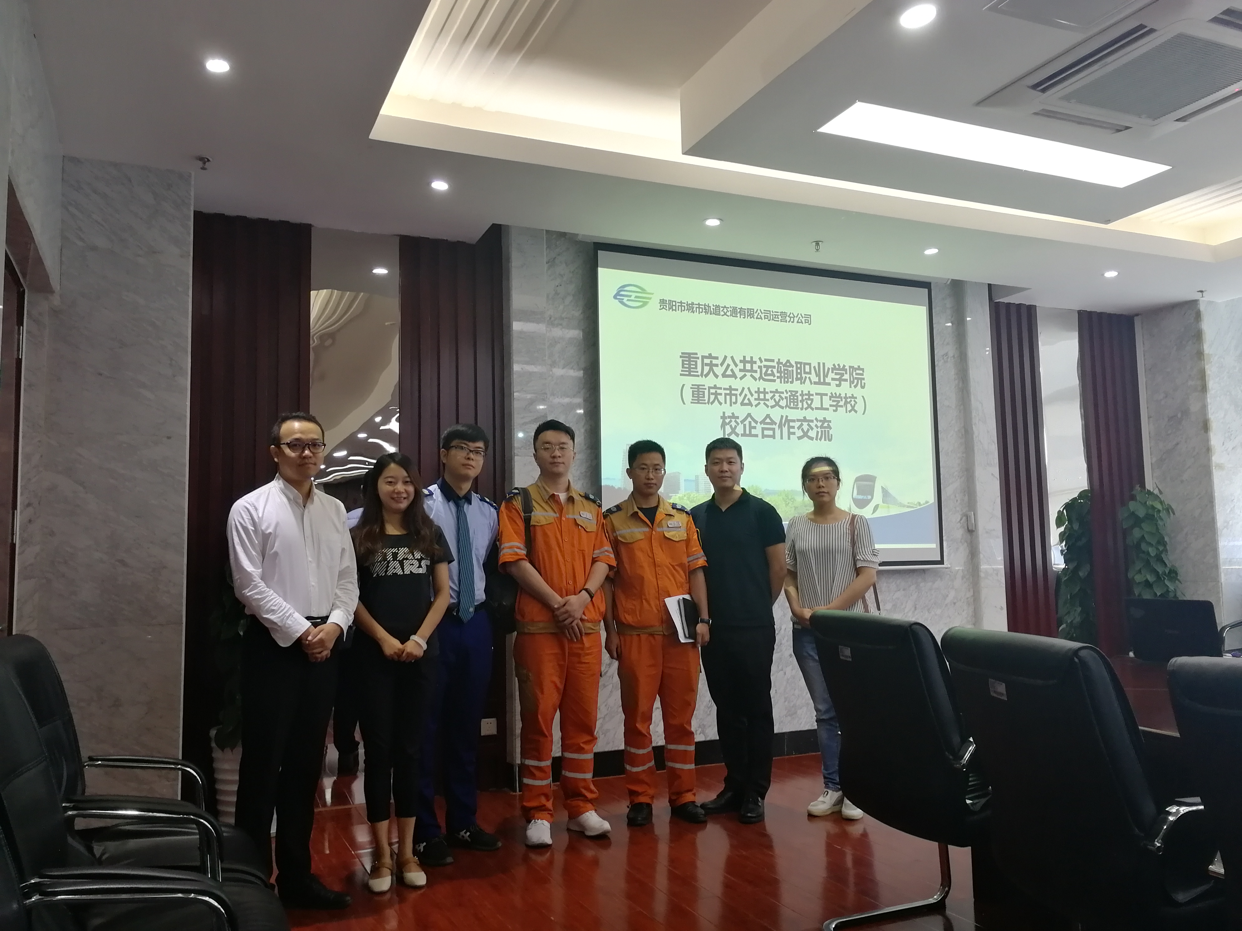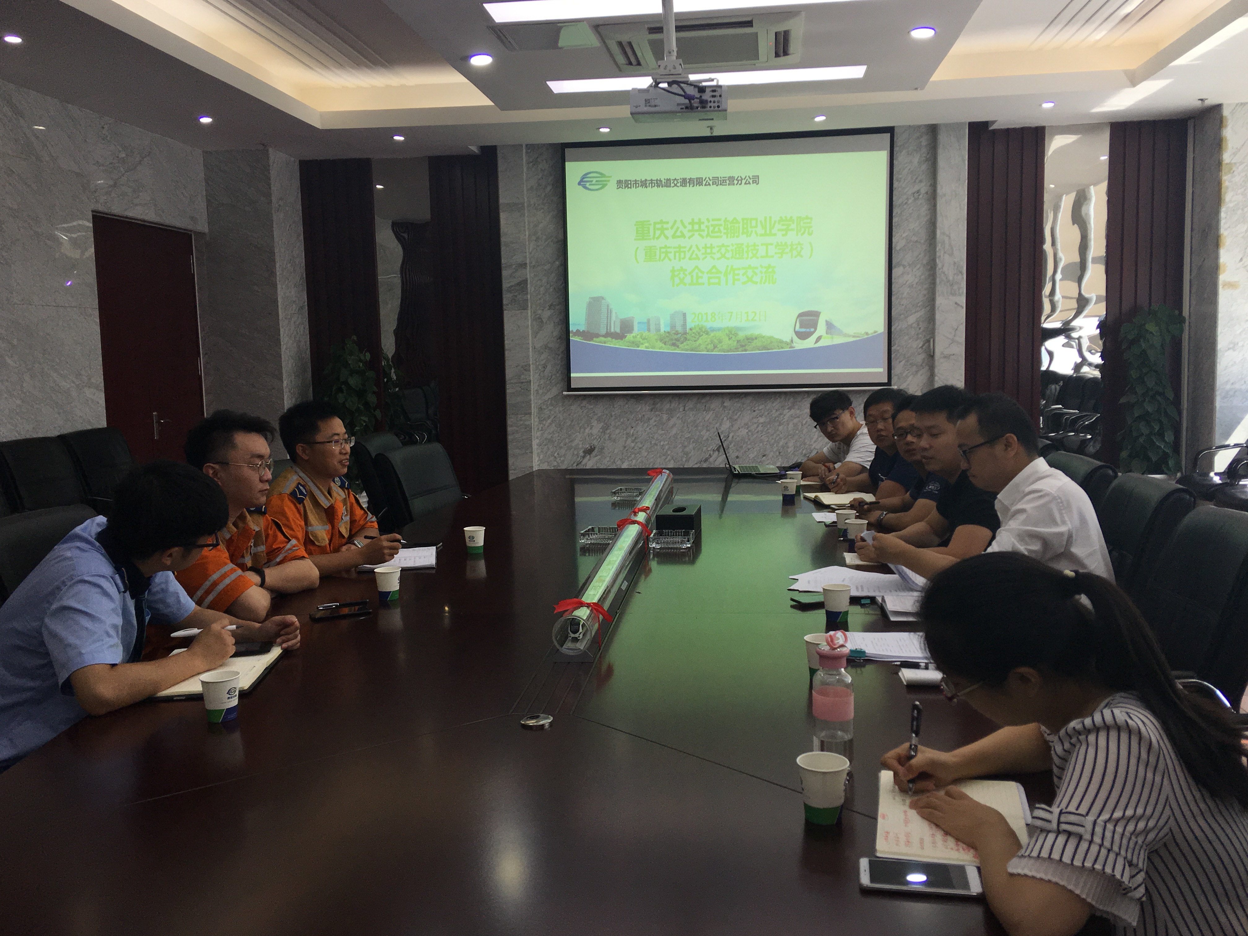 2018年7月12日,学院院长助理、教务处处长兼城市轨道交通车辆专业带头人唐春林,轨道车辆与机械系综合办公室主任蒋晶,铁道机车专业负责人王汛,系专任教师王涛,行政秘书汪芯羽等5名教师赴贵阳市城市轨道交通有限公司就即将共同开展的贵阳订单班(城市轨道交通车辆检修方向)及现代学徒制人才培养方案进行现场调研。贵阳市城市轨道交通有限公司运营分公司车务部刘勇、王冠、任子航等3名专业技术管理人员参与本次讨论交流。