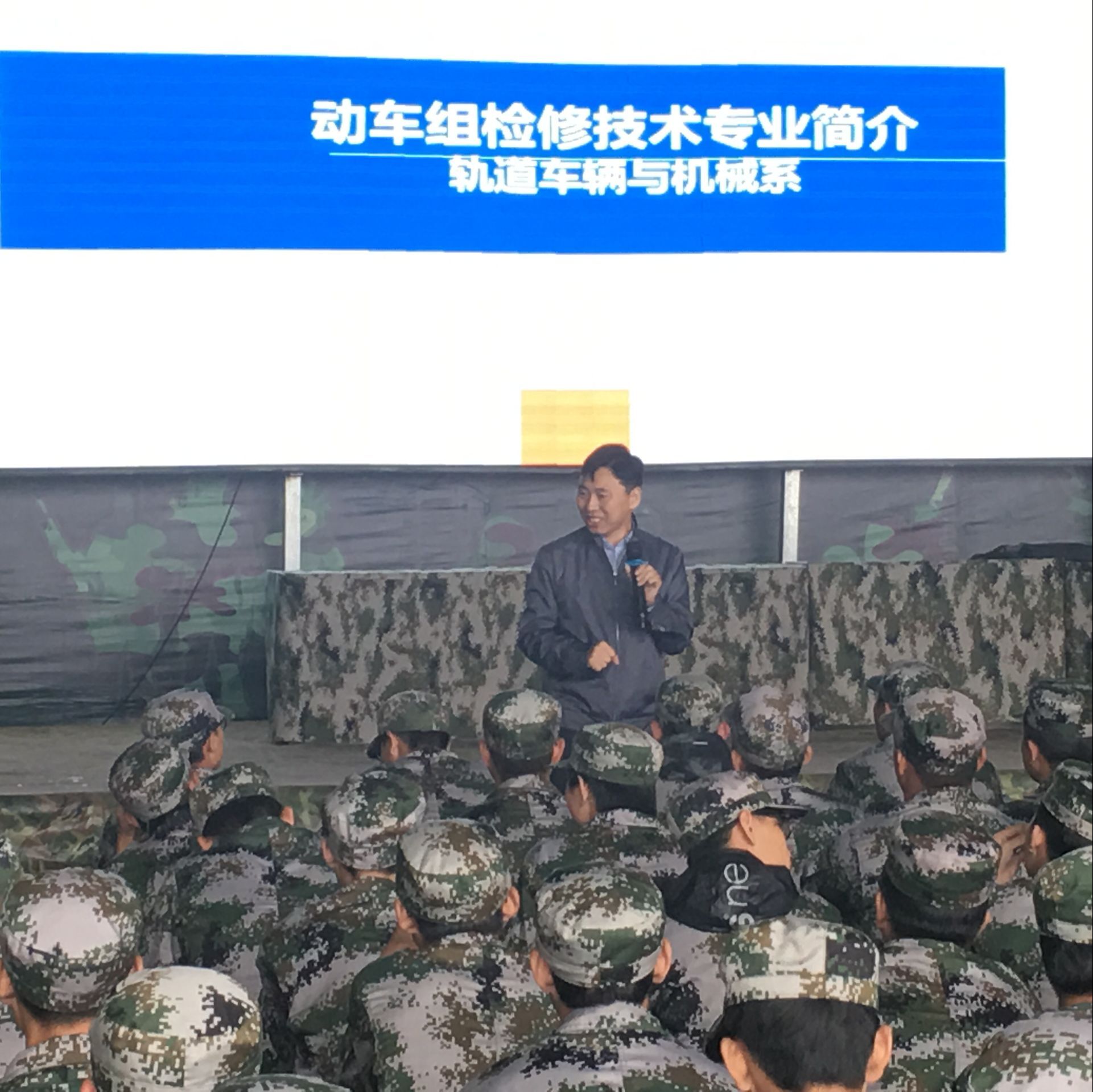 根据2018年新生入学教育计划安排,为丰富2018级新生军训内容,解答学生初入大学校园困惑,增强学生专业认同感,科学规划大学生活和职业生涯,2018年9月11日,轨道车辆与机械系铁道机车、动车组检修技术专业带头人教务处处长唐春林教授,机械制造与自动化专业负责人郑国秀老师、机械设计与制造专业负责人侯小琴分别为铁道机车、动车组检测技术、机械制造与自动化、机械设计与制造专业开展了专业介绍。