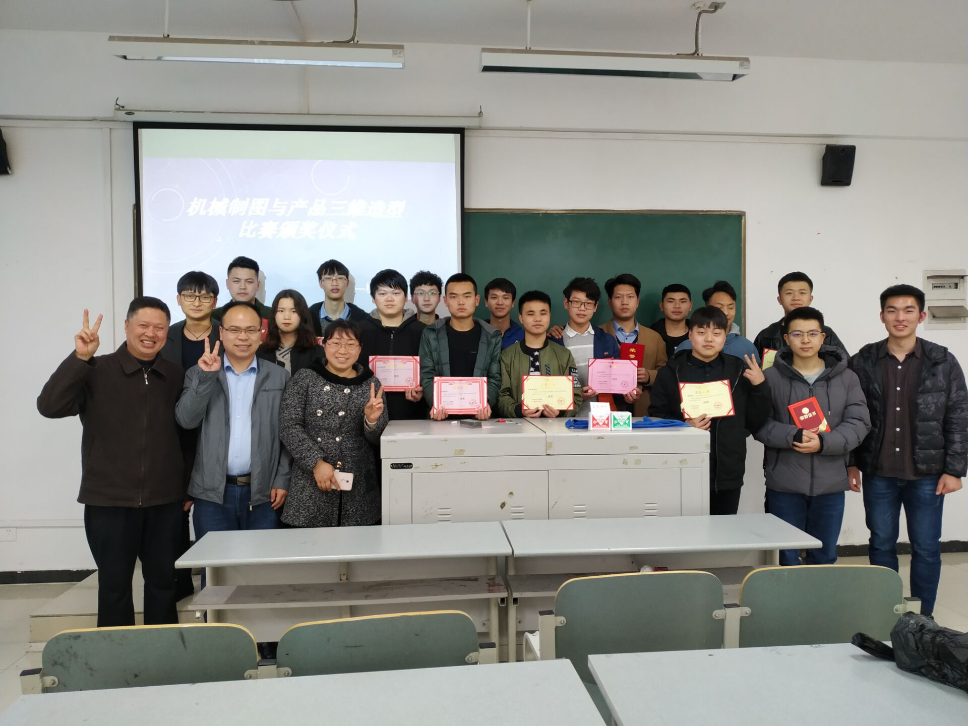 本次颁奖典礼由机械创新协会会长谢寒主持。参与本次颁奖典礼的嘉宾有:机械教研室郑国秀老师、侯小琴老师、张宏老师、王贤涛老师。颁奖典礼开始之际,主持人带领大家共同欣赏了此次活动中涌现出的优秀作品。那一张张的手工绘图体现了绘图时的认真、仔细、严谨和充足的耐心。那一个个三维造型,自由洒脱而又富有想象力的作品,展现出同学们积极创新,努力奋进的点滴。最后活动进入了高潮,为获奖的同学颁奖,并对获奖的同学们进行赞扬和鼓励。