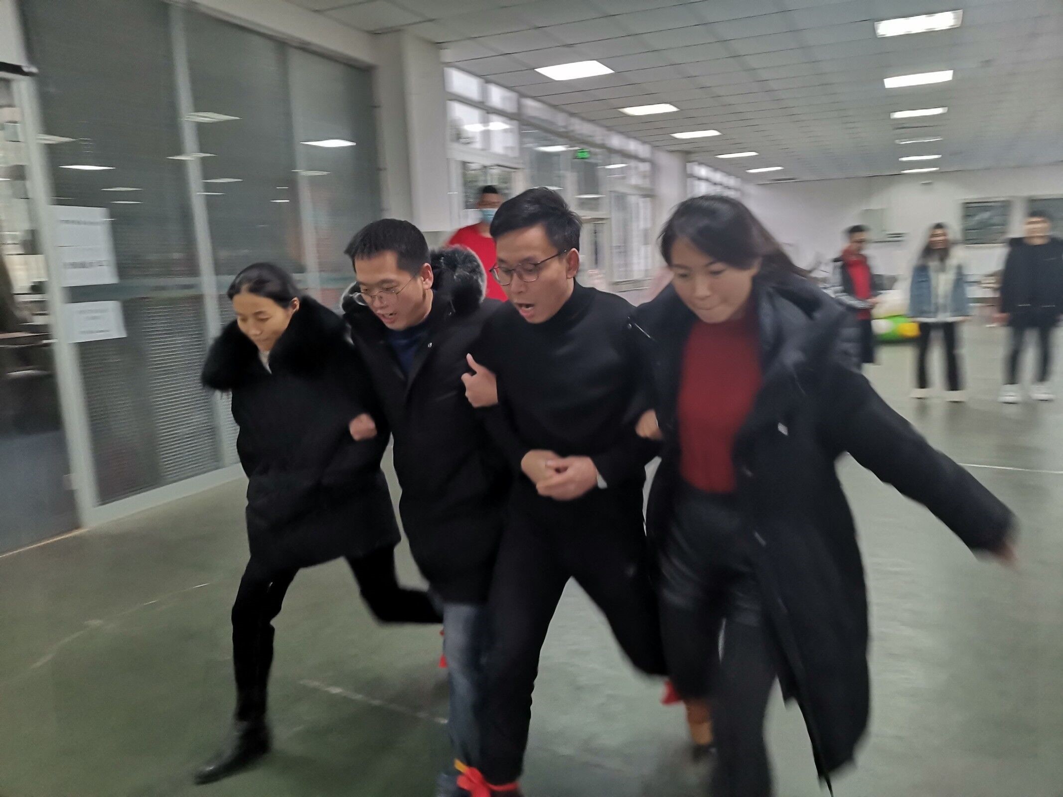 1月7日15时,轨道交通学院在学校主校区活动中心,举行了第一届教师运动会最后的角逐——“趣味相投”比赛。本场比赛包括“穿越呼啦圈”、“集体跳绳”“龟兔赛跑”、“人多足少”、“全力拔河”和“迎面接力”等六个子项目。